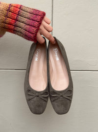 Disse klassiske ballerinaer tilbyder et tidløst og elegant udtryk i en . Skoen kombinerer en glat overflade med en blød, tekstureret tå, der skaber et diskret men sofistikeret spil i materialerne. En lille sløjfe foran tilføjer et feminint touch, mens den flade sål sikrer høj komfort til hverdagsbrug. Perfekte som et alsidigt valg til både arbejde og fritid, hvor du ønsker en enkel, stilren og behagelig sko.