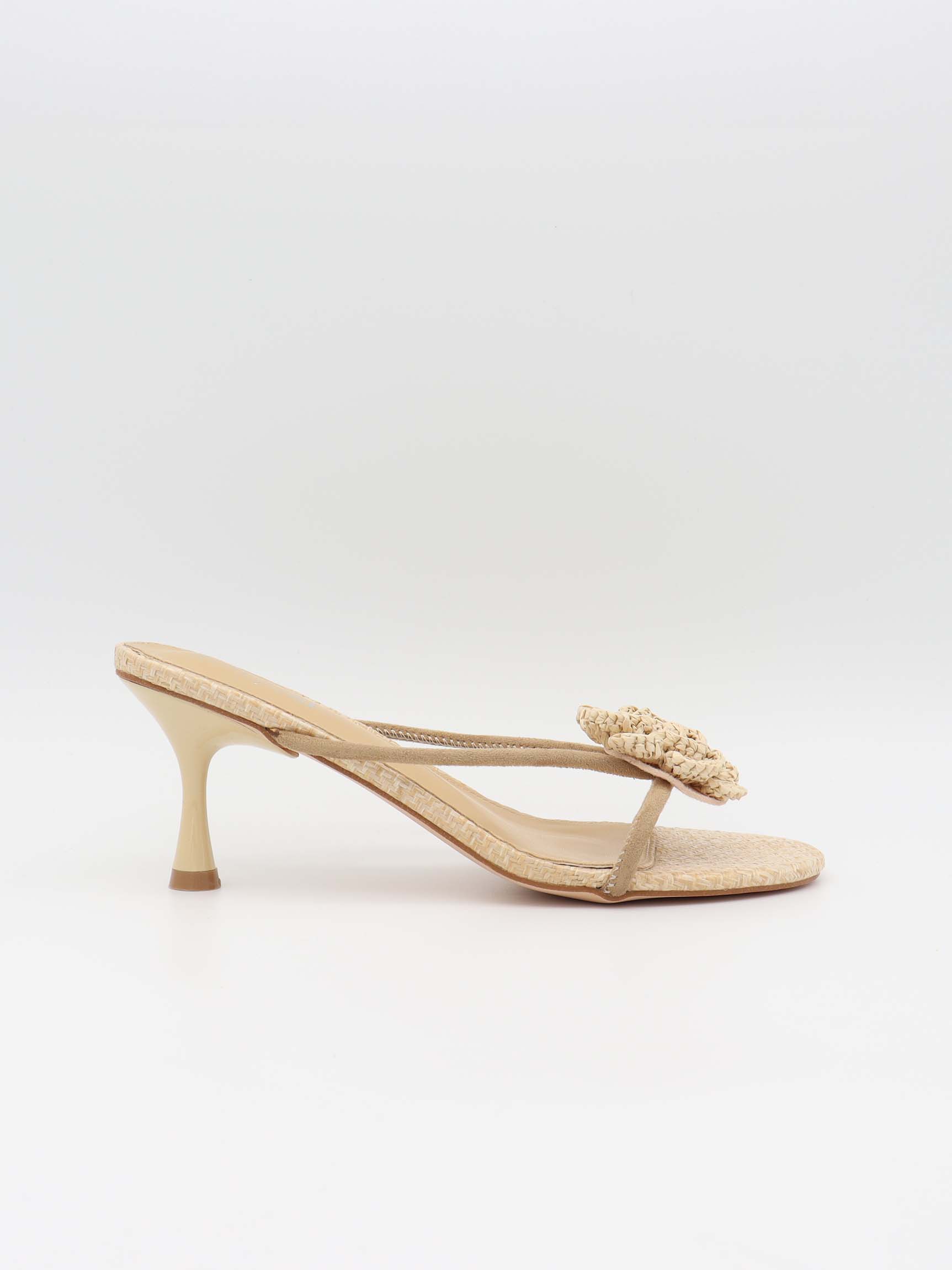 Disse feminine stiletter emmer af sommerlig elegance med deres naturlige, flettede struktur og dekorative blomsterdetalje foran. Den sarte beige nuance giver et let og raffineret udtryk, mens den slanke hæl tilføjer et stilfuldt løft uden at virke overdreven. De fine, tynde remme skaber et luftigt design, som gør stiletterne perfekte til varme dage og festlige lejligheder.
