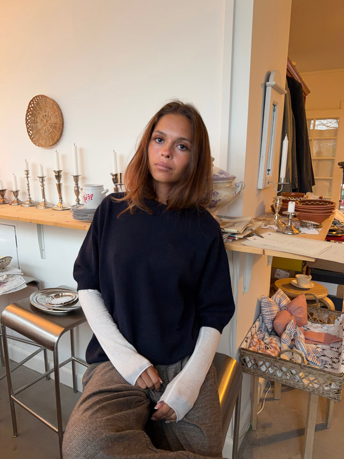 Arabella strikket t-shirt - Navy