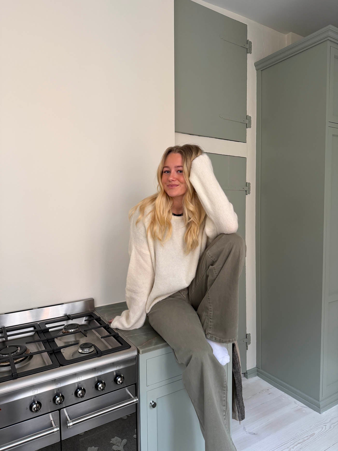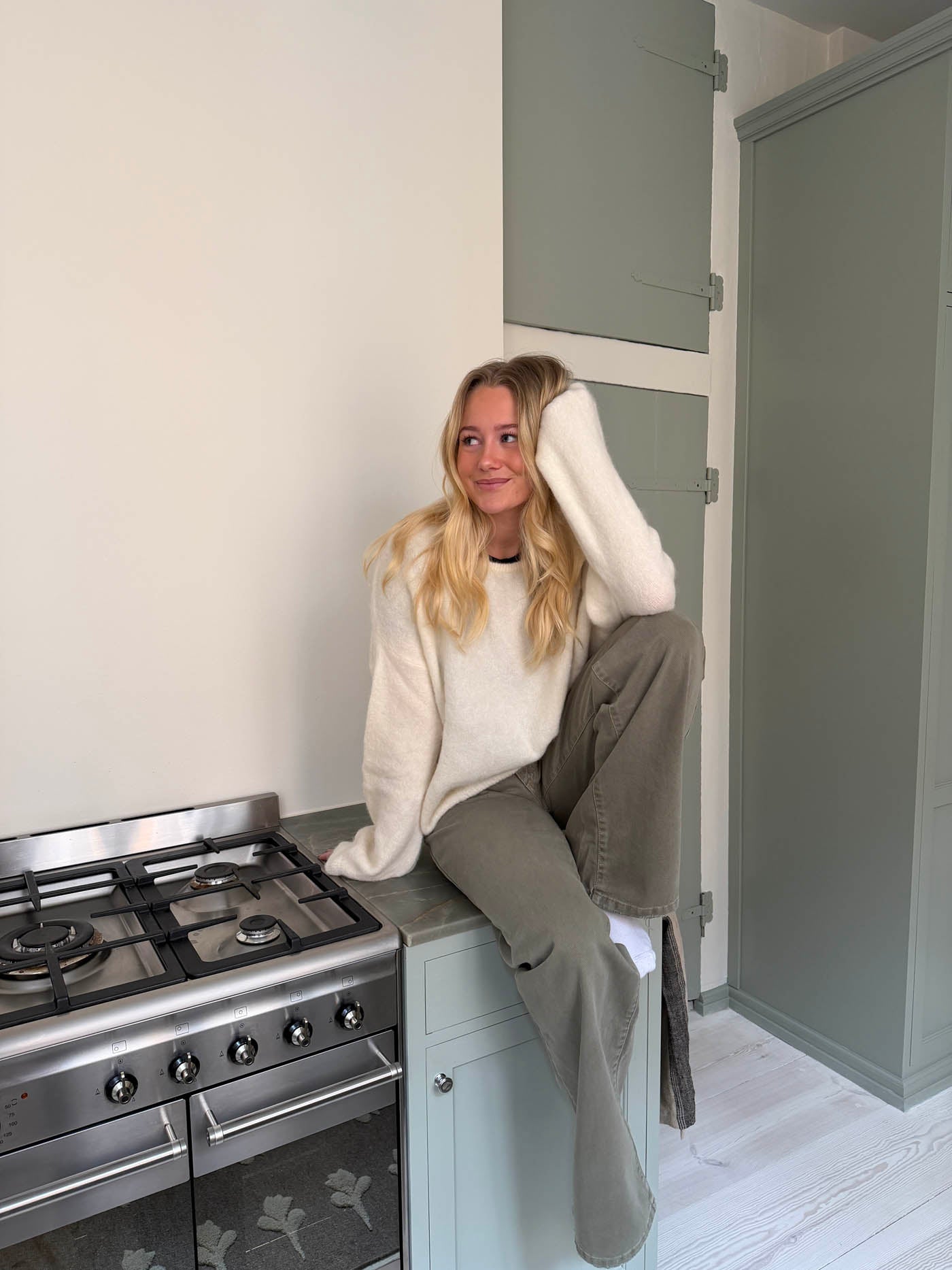 Denne striktrøje er lavet i det blødeste materiale. Trøjen har lange ærmer og en oversized pasform.
