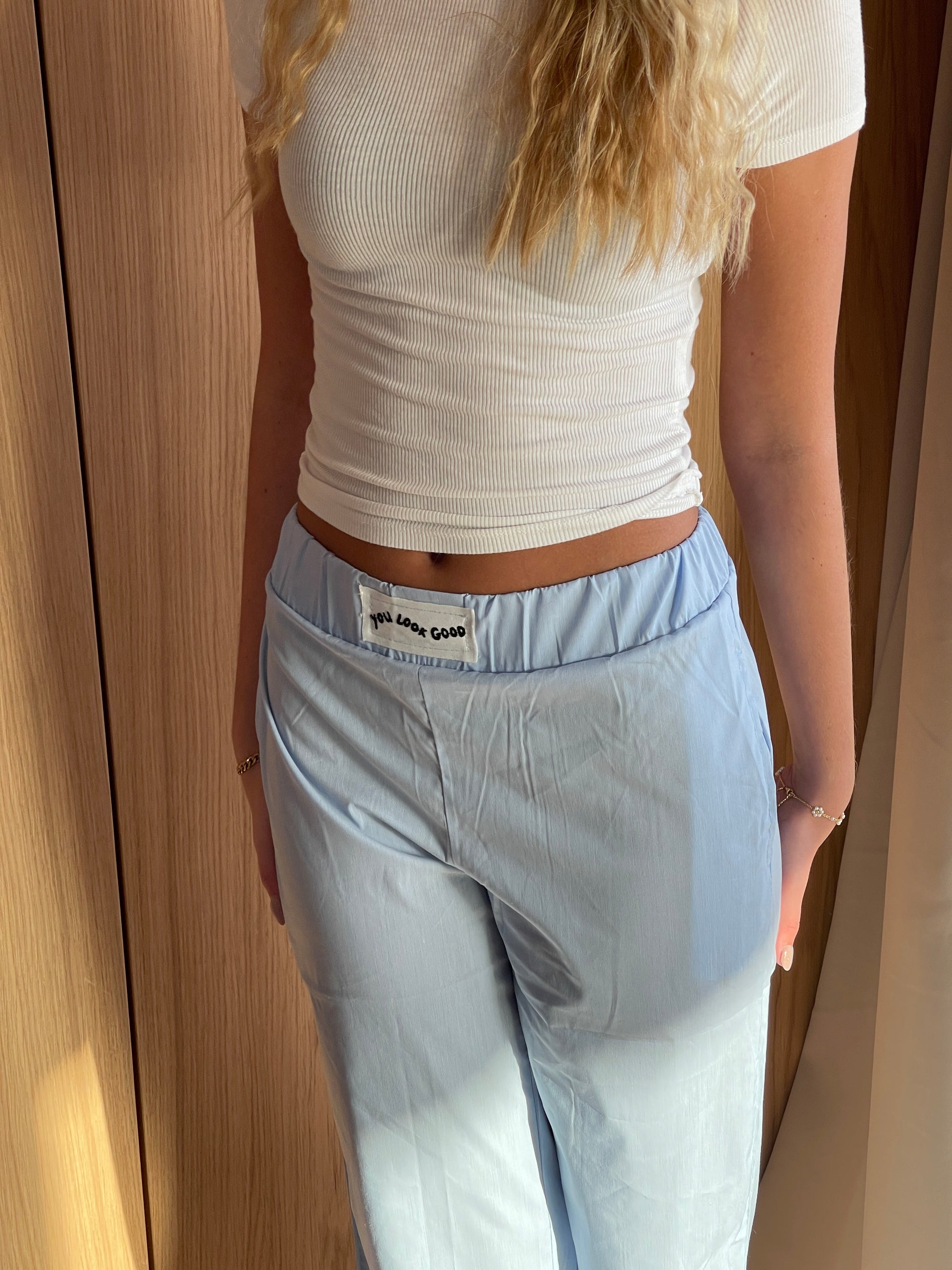 Disse bukser har et vendbart taljebånd med label hvor der står "YOU LOOK GOOD", som kan ses på begge sider. Bukserne har en løs og behagelig pasform, så de kan både bruges til afslapning derhjemme eller til hverdag. De har 2 lommer i siderne.
