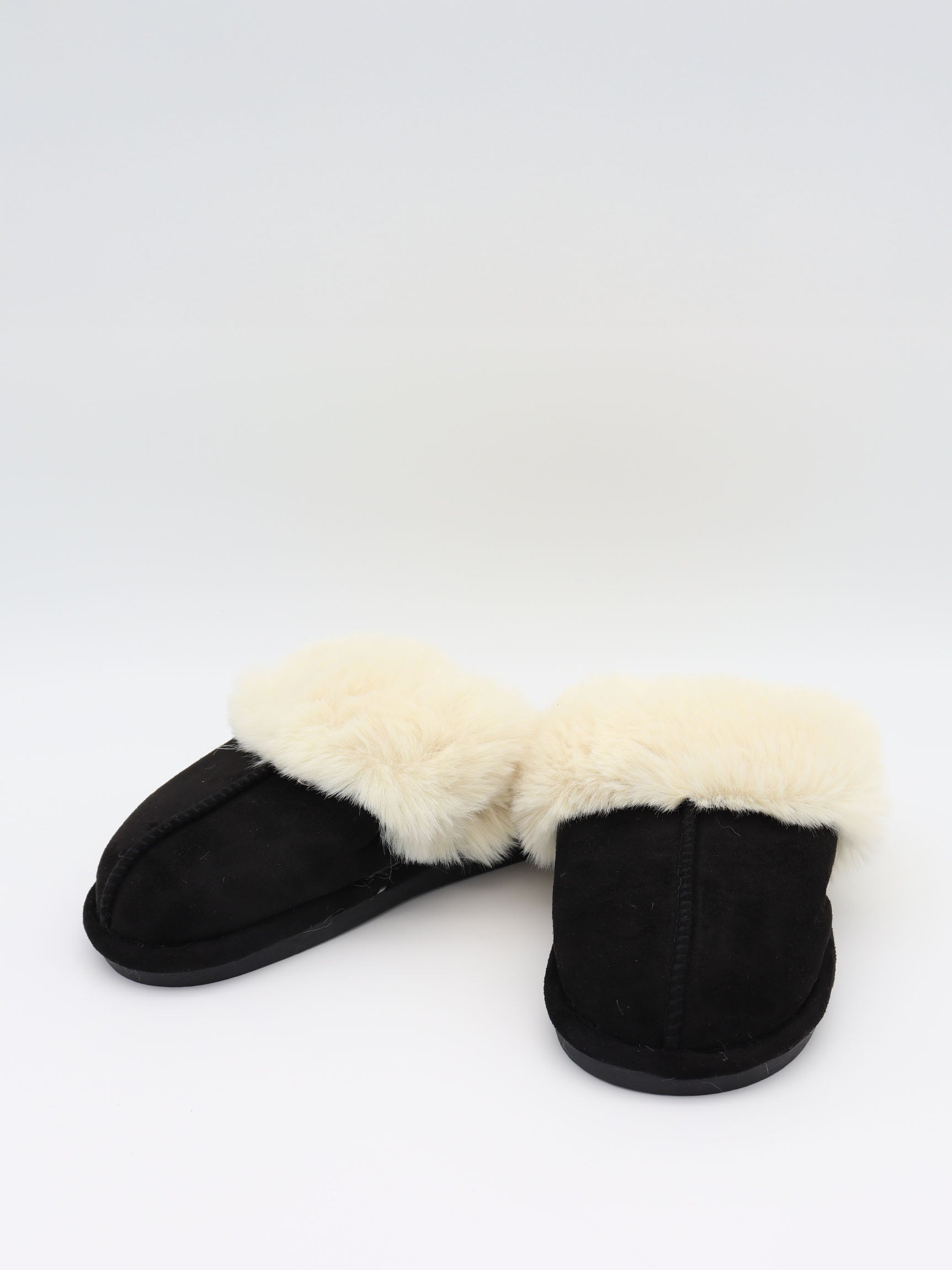 Behagelige hjemmesko som er helt perfekte til de koldere sæsoner. Hjemmeskoen har en pelskant henover foden og indeni, så de holder ens fødder dejlig varme.