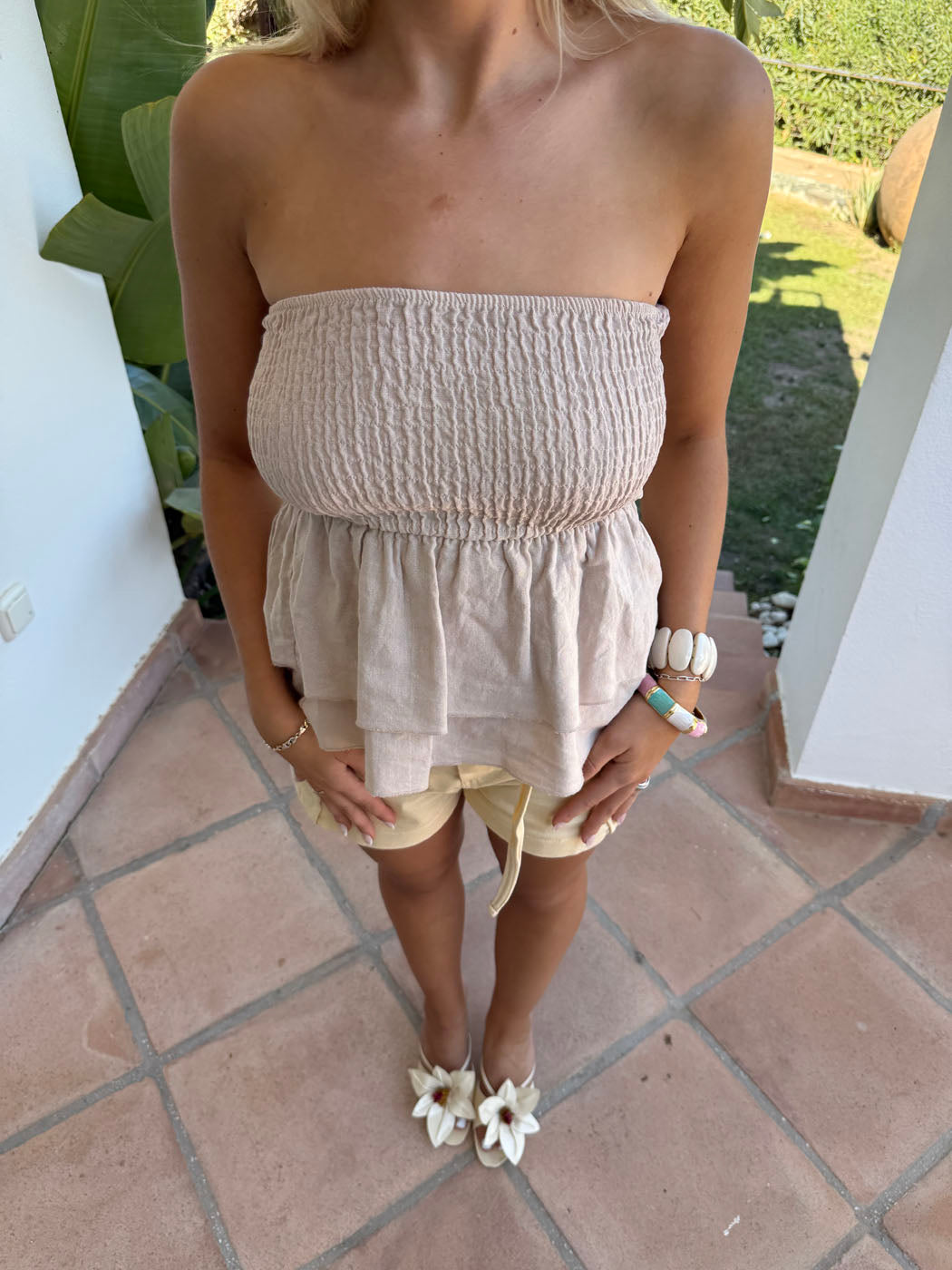 Violetta bandeautop i hørblanding - Beige
