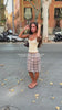 Denne ternede midi-nederdel kombinerer hverdagskomfort med et cool vintage-inspireret look. Den bløde, let transparente mesh-kvalitet og det lige snit skaber en flatterende silhuet, mens det gråbeige ternemønster tilføjer struktur og et grafisk, retro præg.