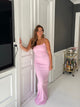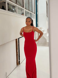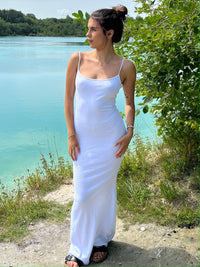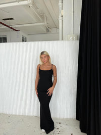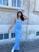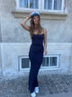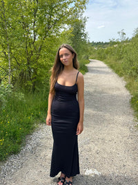 Lang tætsiddende kjole i rib og med tynde stropper