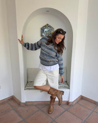 Annabelle striktrøje med striber - Beige