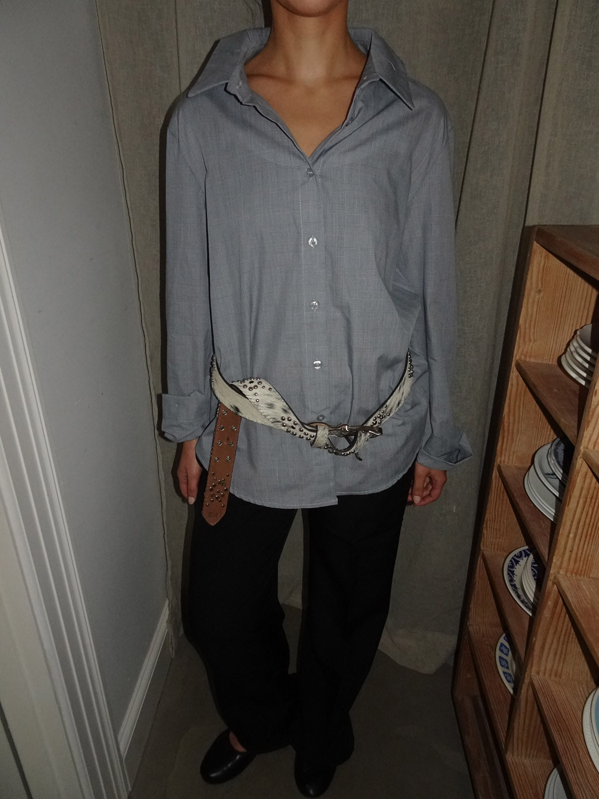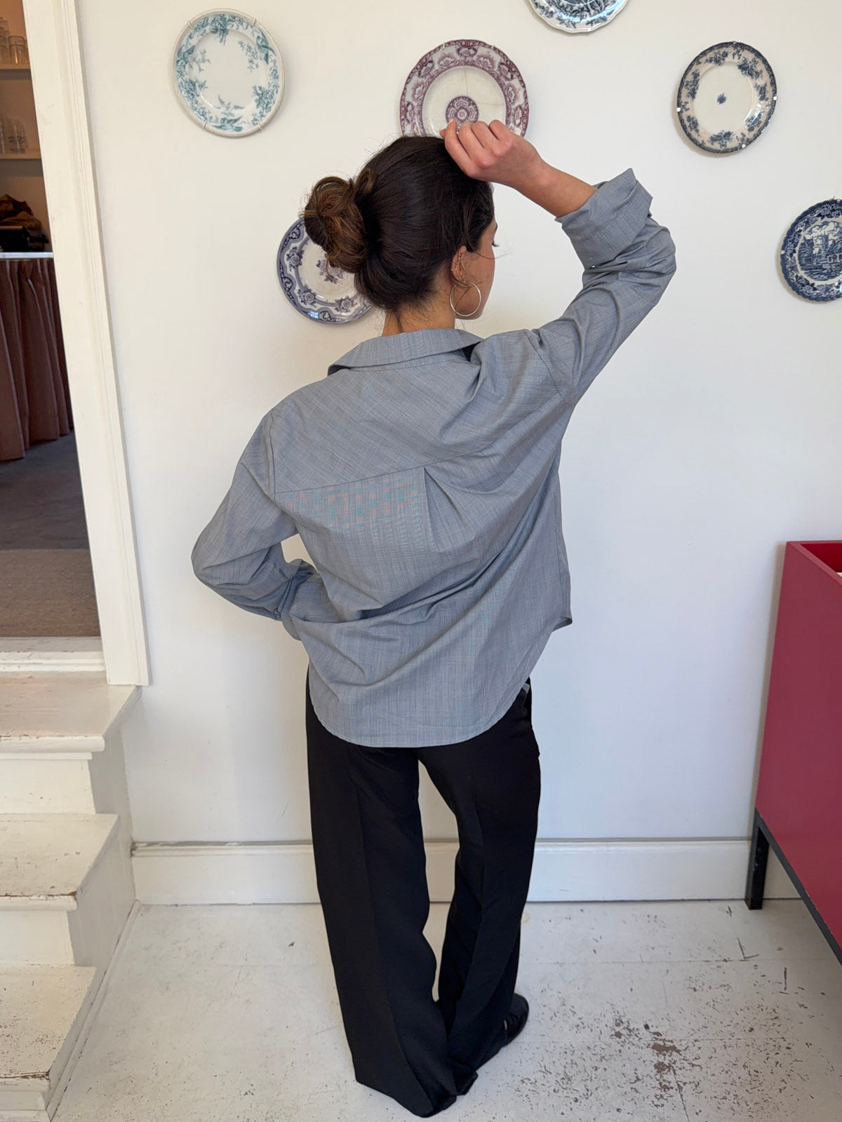 Denne ternede skjorte med løs pasform kombinerer klassisk stil med moderne detaljer. Skjorten har en sofistikeret krave og en iøjnefaldende detalje ved enden af ærmerne, som giver et unikt touch. Den lette, åndbare kvalitet sikrer både komfort og et stilfuldt udtryk. Perfekt til dig, der vil have en skjorte, der skiller sig ud uden at gå på kompromis med den klassiske stil.