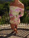Chila off shoulder kjole med blomster - Gul/lyserød