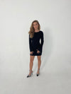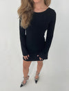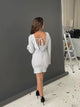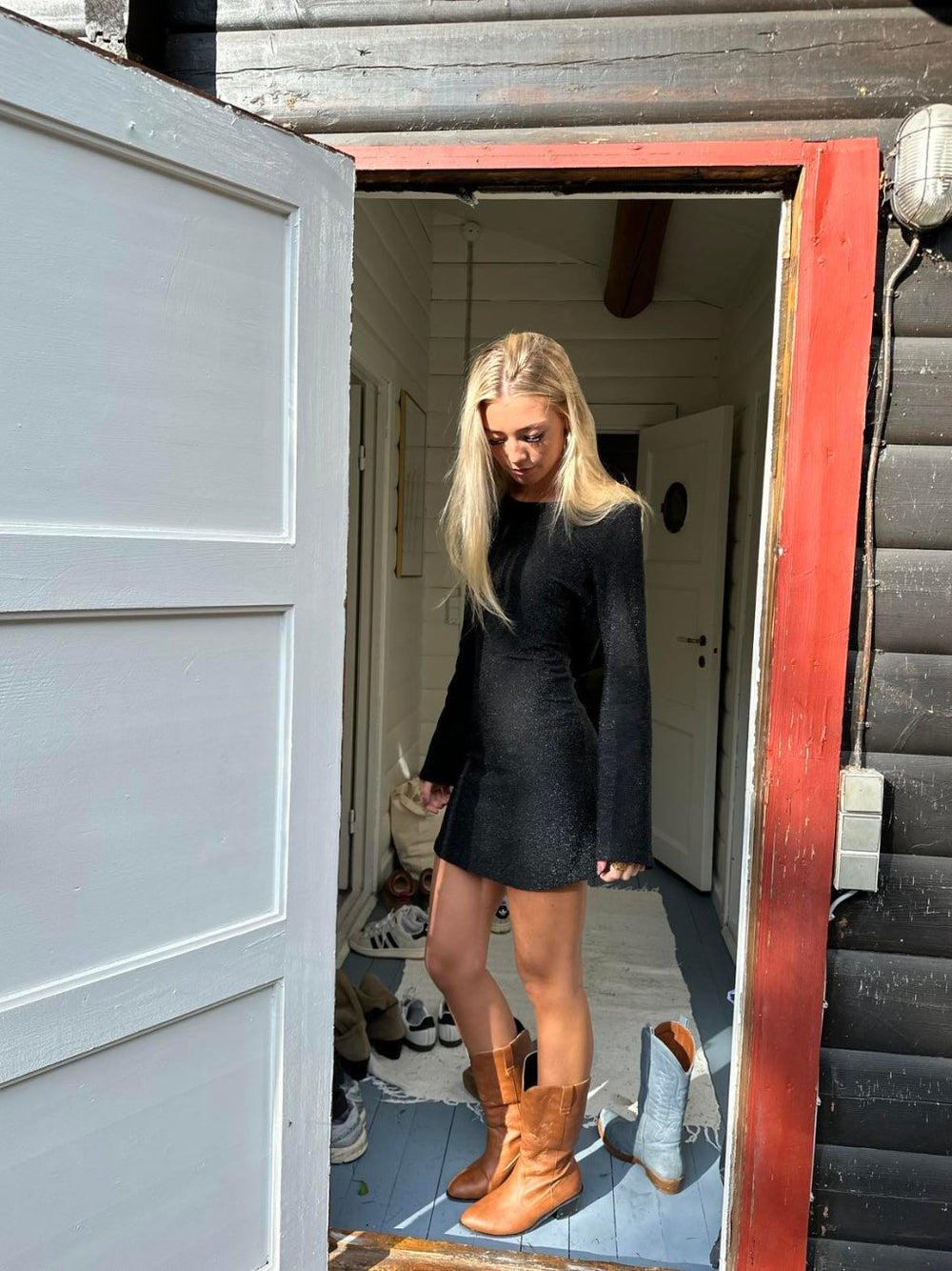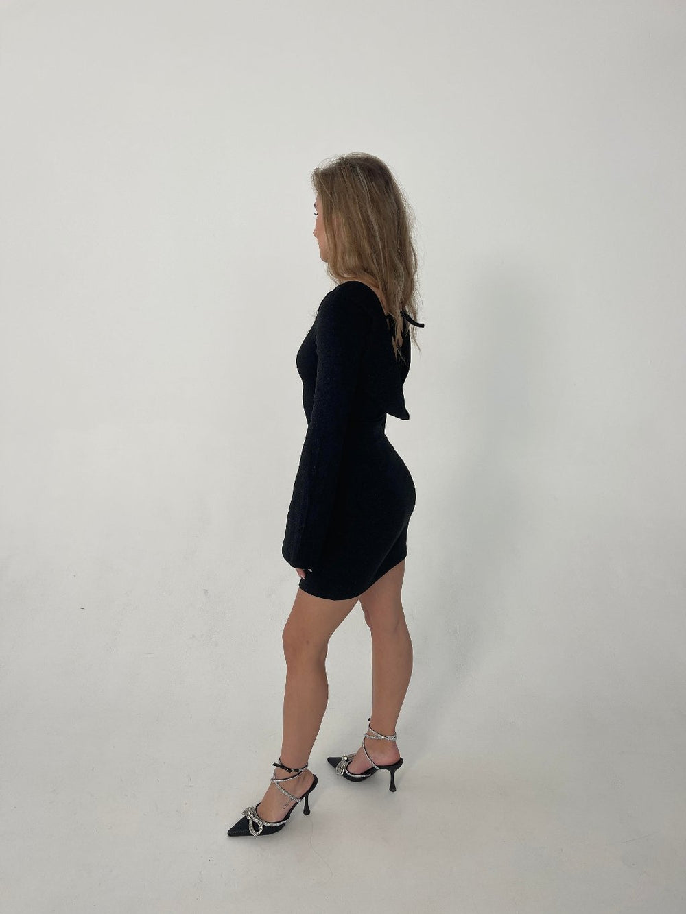 Smukkeste kjole, der er perfekt til nytårsaften eller andre festlige begivenheder. Kjolen har fine detaljer i form af flared ærmer og åben ryg med bindebånd.