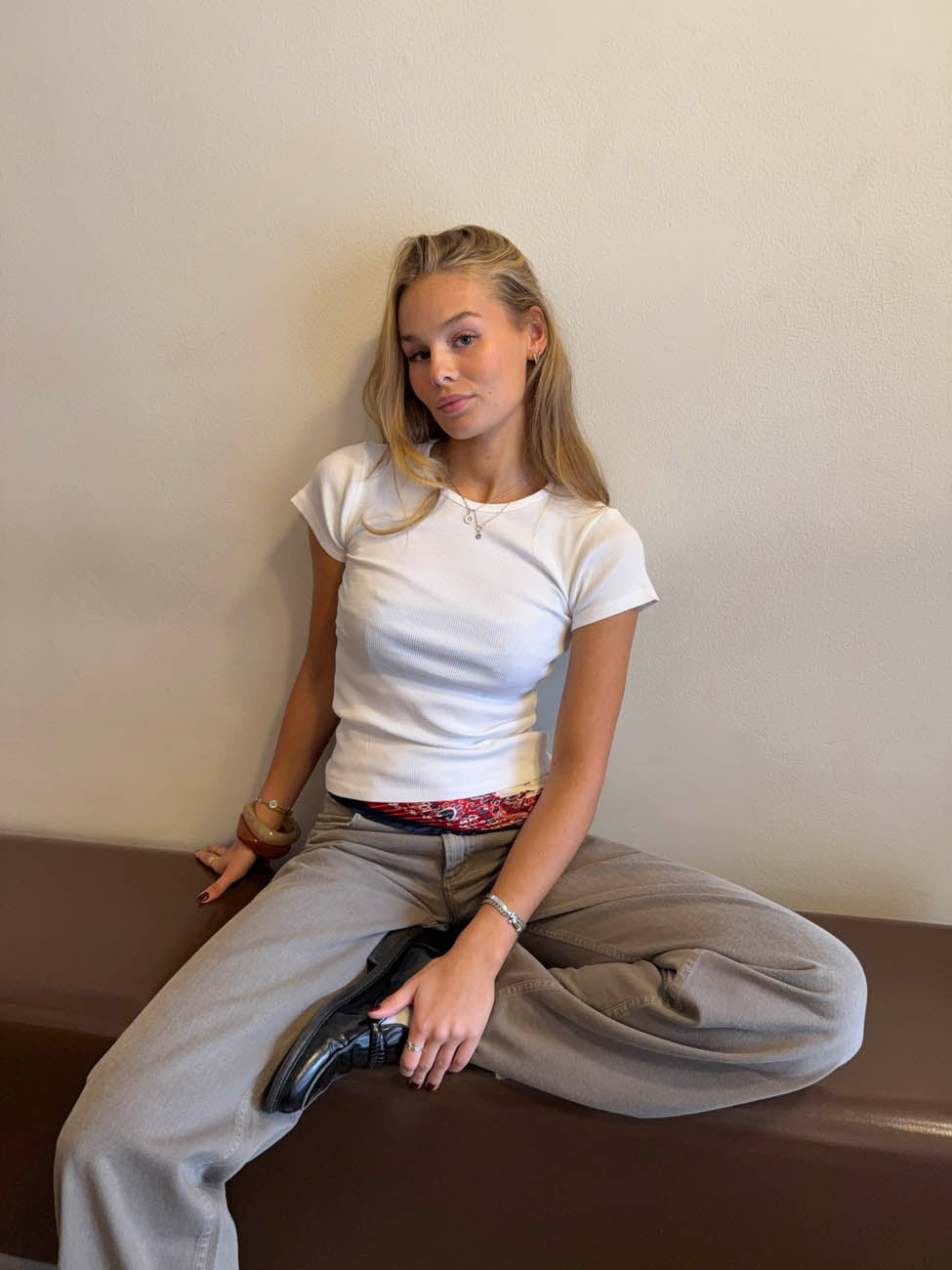 Denne hvide rib t-shirt er essensen af enkelhed og komfort. Den tætsiddende pasform og bløde, elastiske ribstruktur giver et feminint og flatterende look, mens den klassiske runde hals og korte ærmer gør den til et alsidigt basisstykke i garderoben.