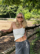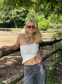 Denne top med one shoulder har en kort og stram pasform. Toppen har de fineste blondedetaljer, og er længere i den ene side.