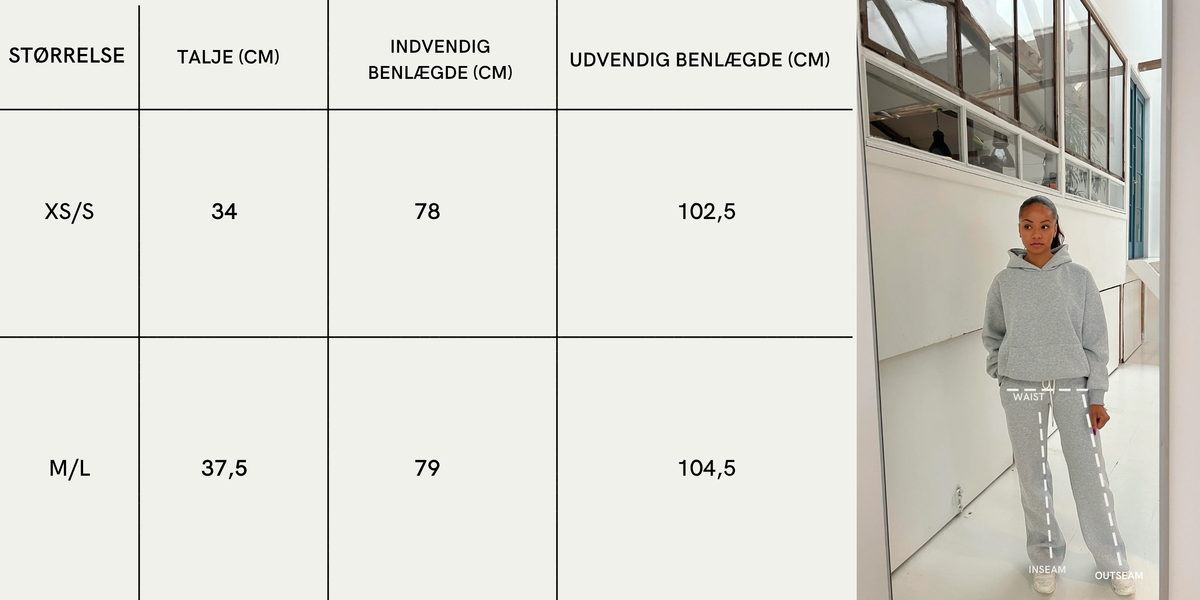 Disse sweatpants har en lige og behagelig pasform. Bukserne har et elastisk taljebånd, som kan bindes med hvide snøre. De er lavet i det blødeste materiale, og så har de to lommer i siderne. Passer perfekt sammen med vores Anelise hoodie!