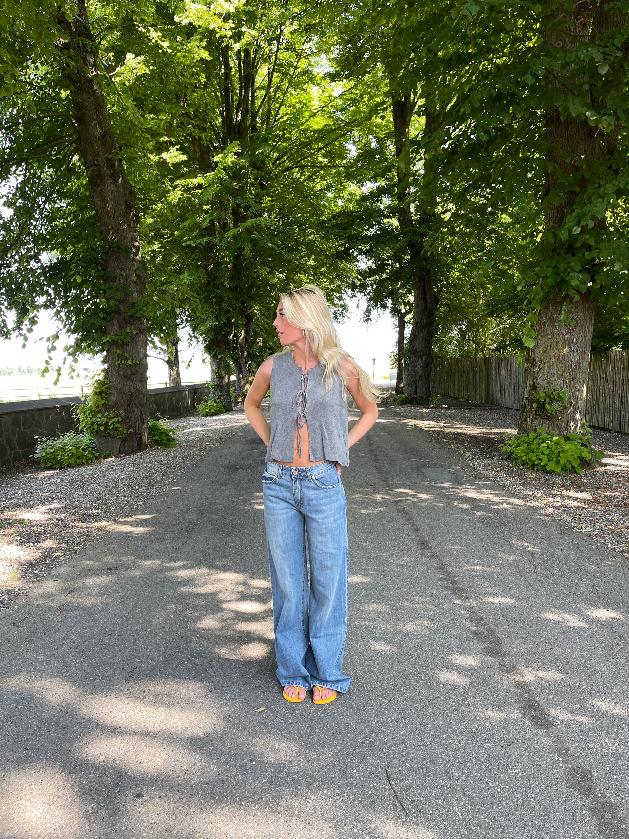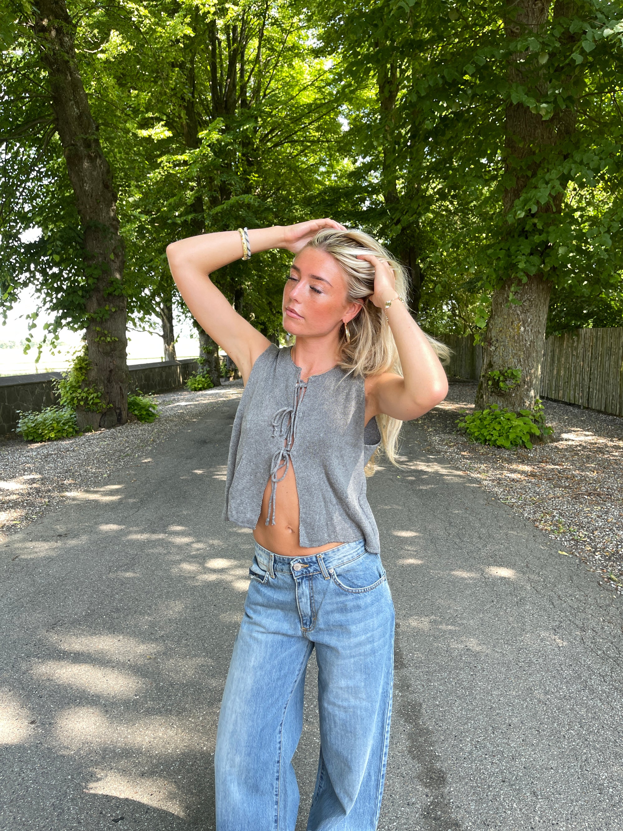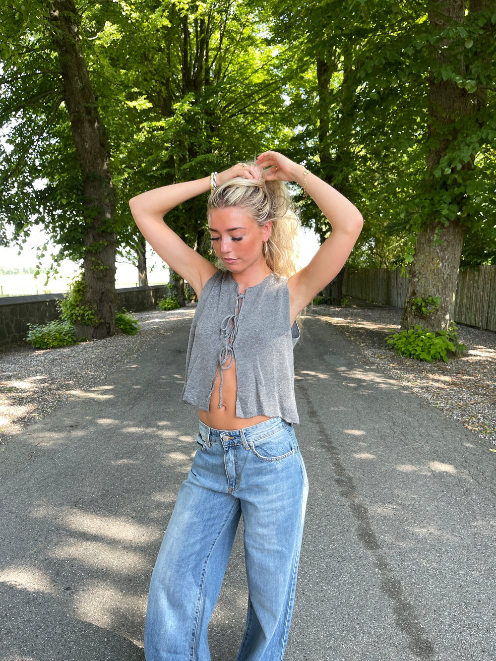 Vores fine Frigg top i 100% bomuld kommer med 3 bindebånd foran, som gør den perfekt til sommeren, da den giver et perfekt let og effortless look! Toppen fås kun i onesize, men grundet de 3 bindebånd bliver den justerbar.