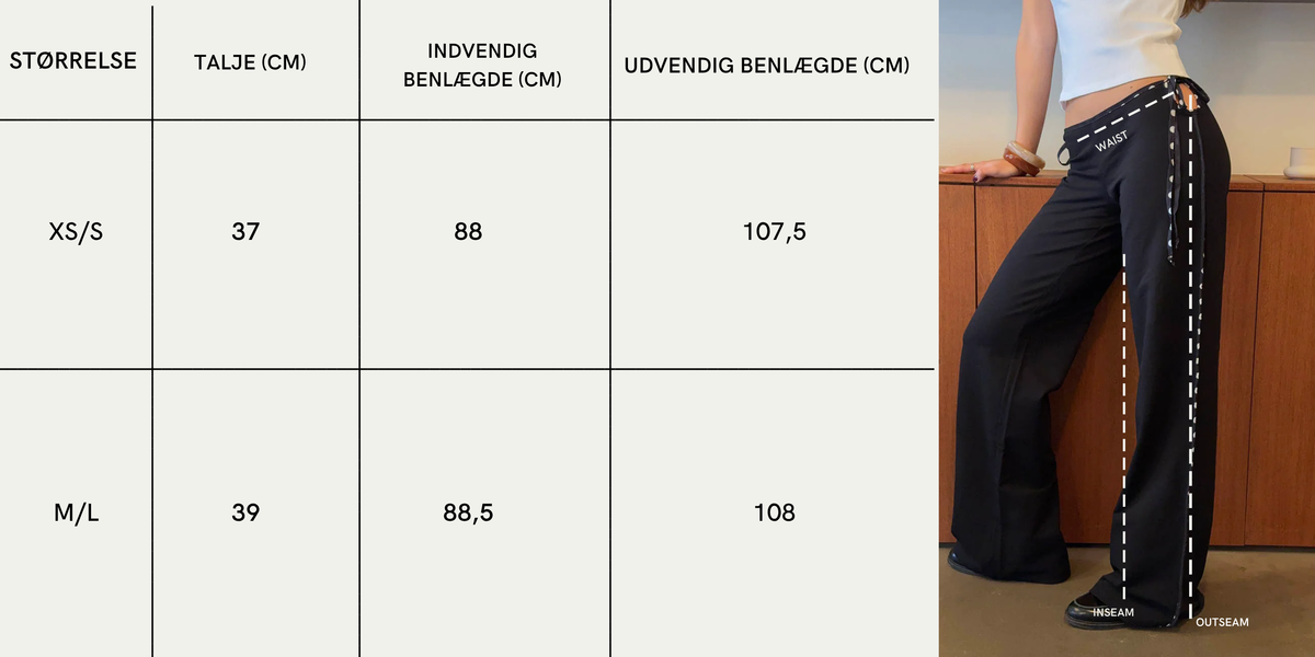 Disse sorte bukser er både stilfulde og komfortable - perfekte til hverdagsbrug eller afslappede lejligheder. De har et enkelt, minimalistisk design med lige ben og talje med bindebånd, som sikrer en god og fleksibel pasform. Det lette materiale giver bukserne et afslappet fald, der gør dem nemme at style med både t-shirts, skjorter og strik.