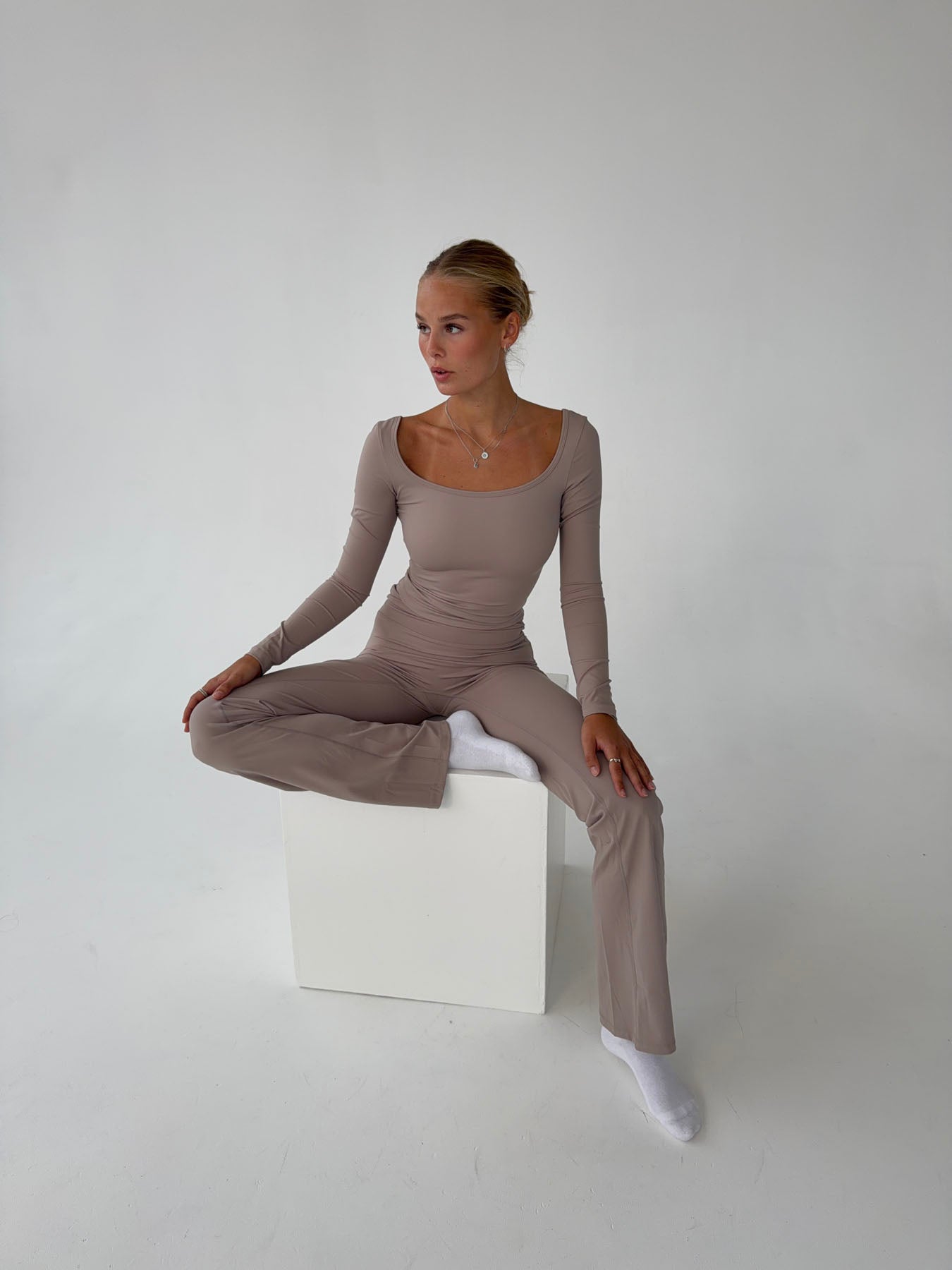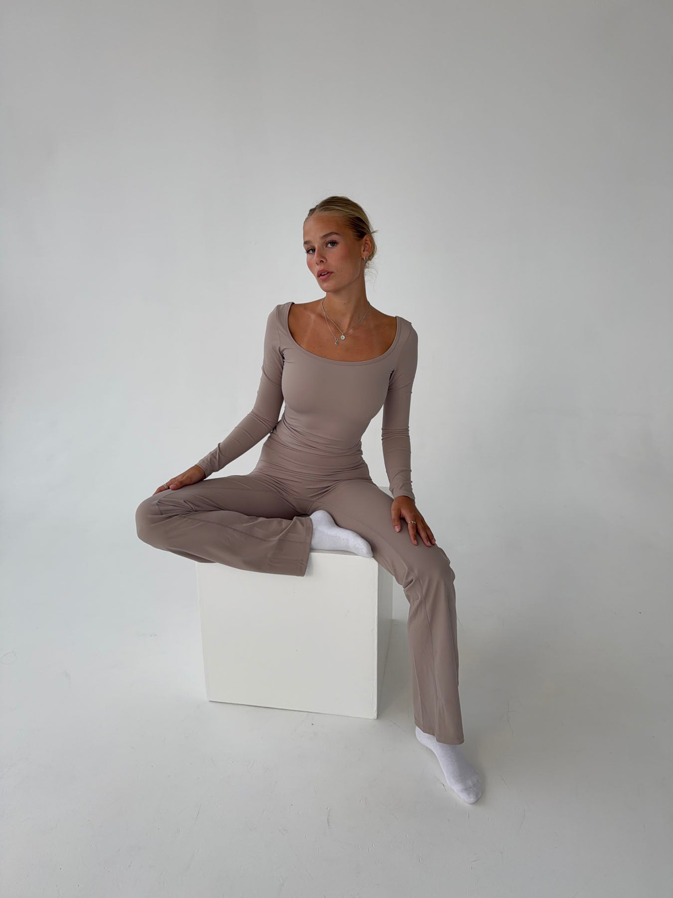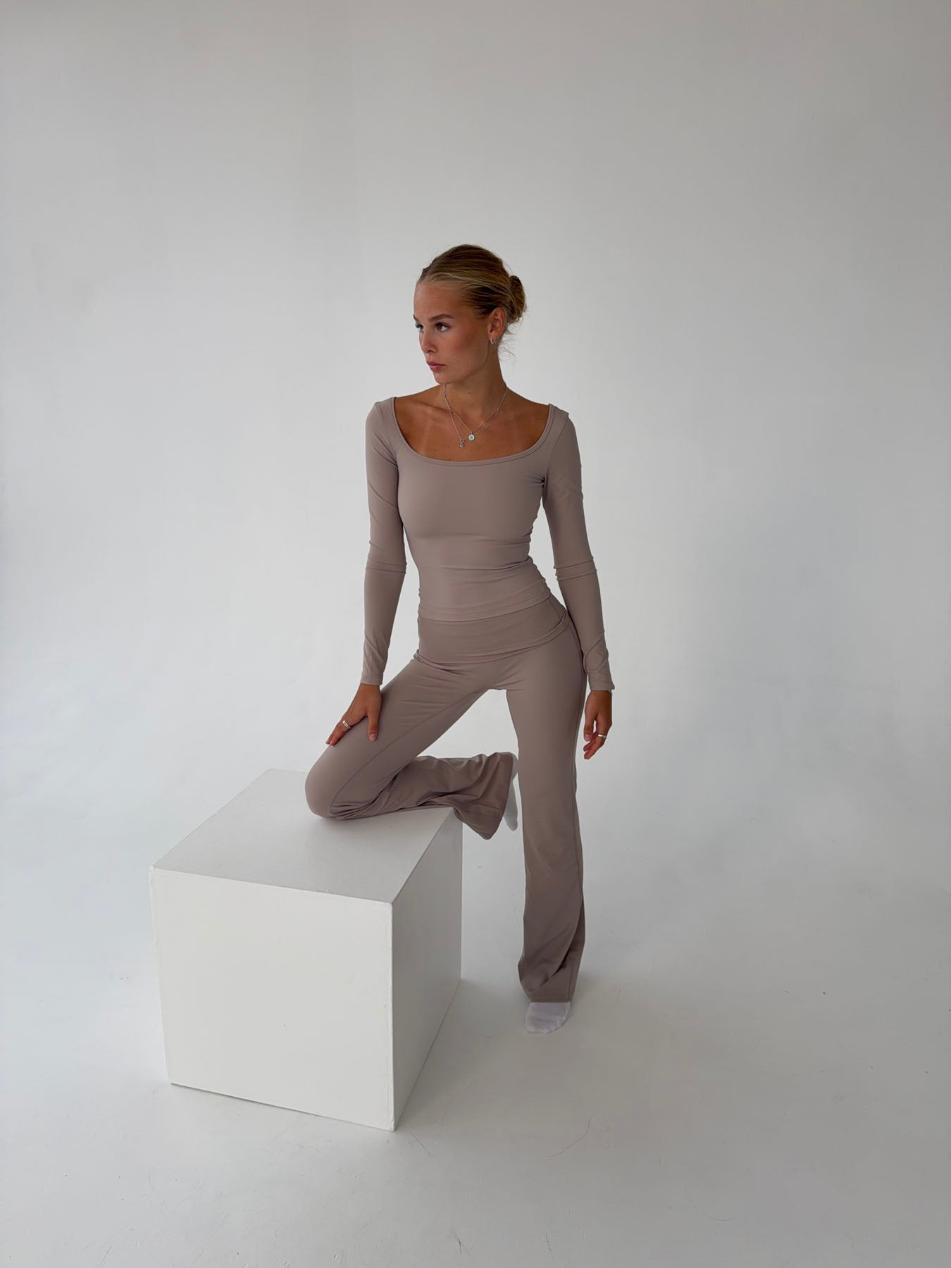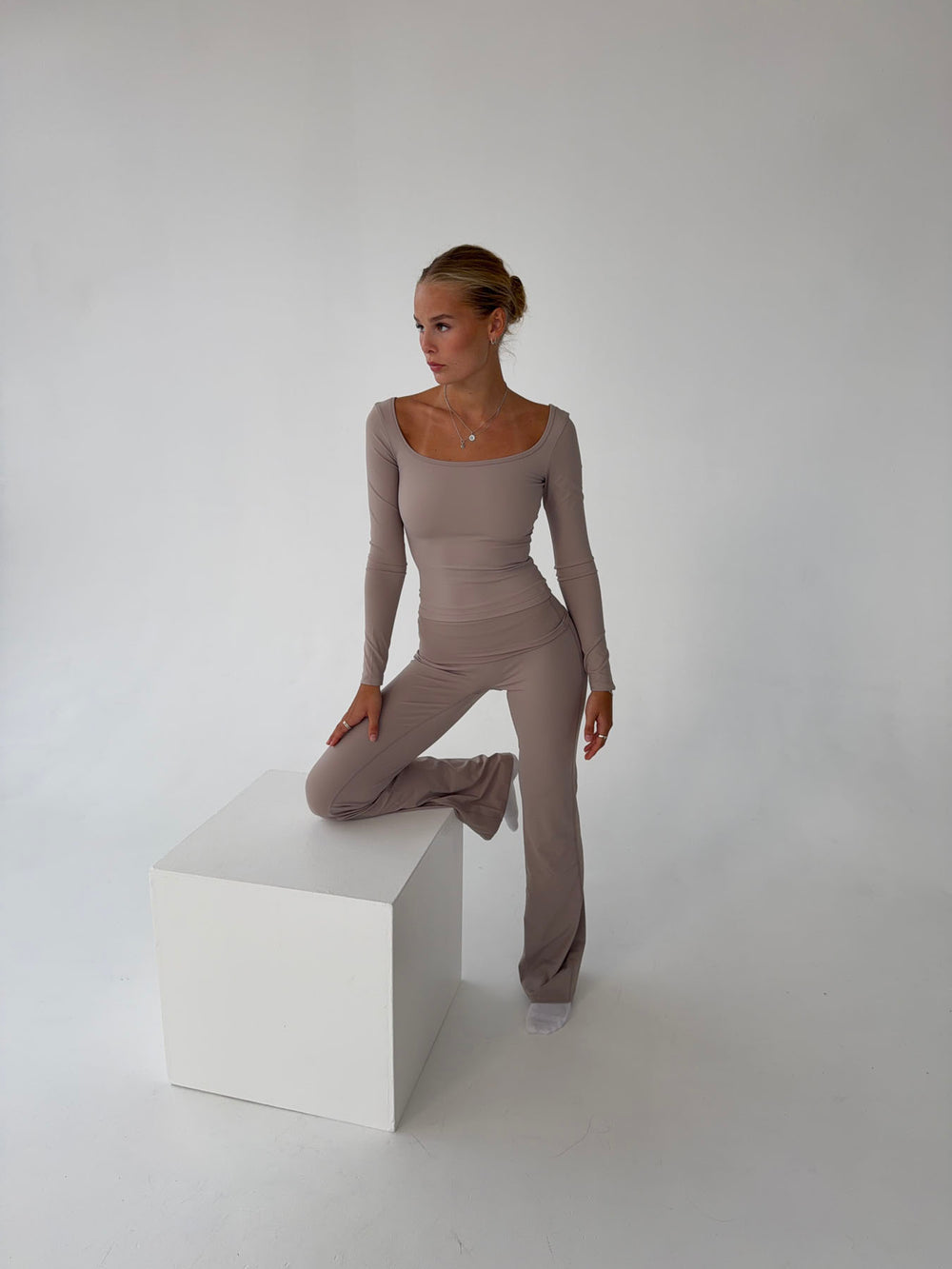 Denne træningsbluse i taupegrå kombinerer funktionalitet med et stilrent, feminint design. Det bløde, åndbare materiale giver maksimal bevægelsesfrihed og komfort under træning, mens den tætsiddende pasform og runde firkantede udskæring skaber et moderne og flatterende look. De lange ærmer og det enkle snit gør blusen ideel til både yoga, løb eller hverdagsbrug, hvor du ønsker et sporty, men elegant udtryk. Et perfekt valg til dig, der vil føle dig både komfortabel og velklædt – uanset aktivitet.