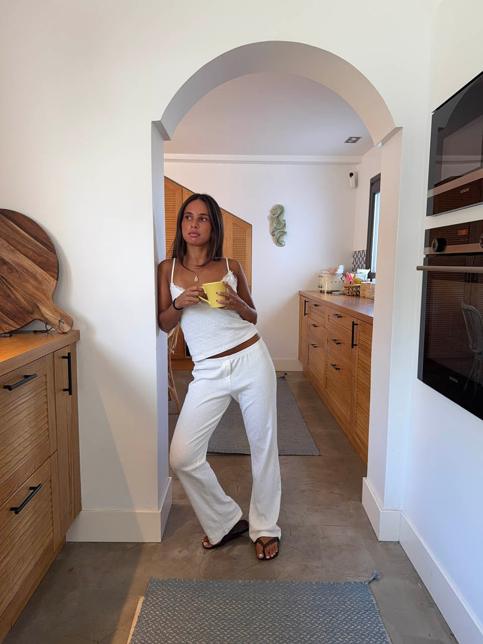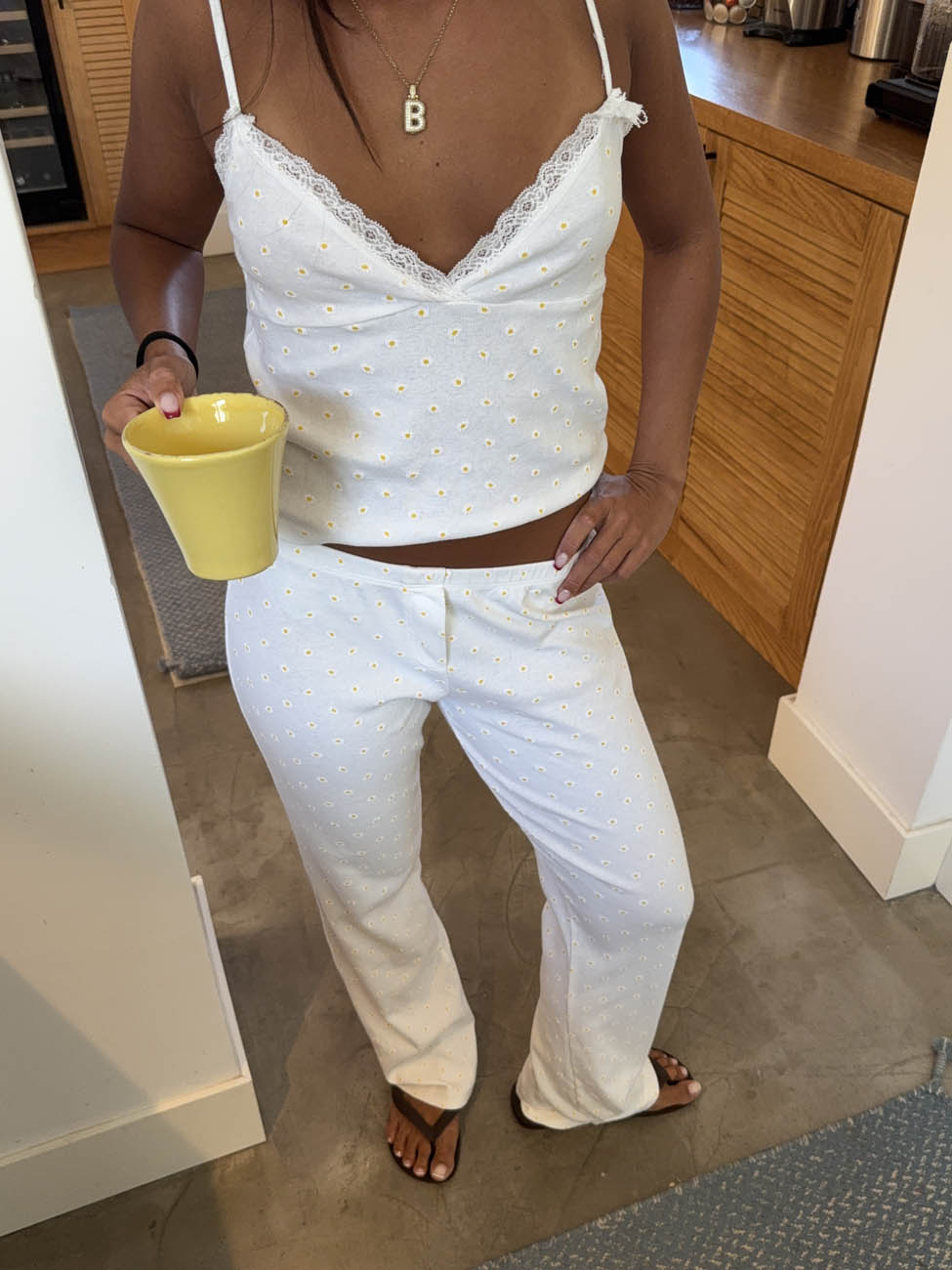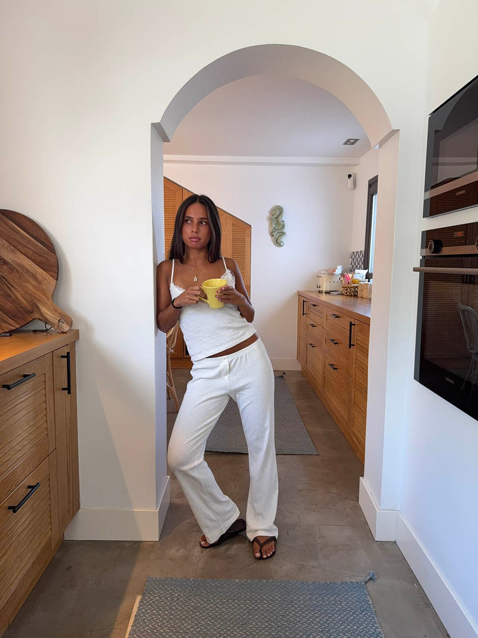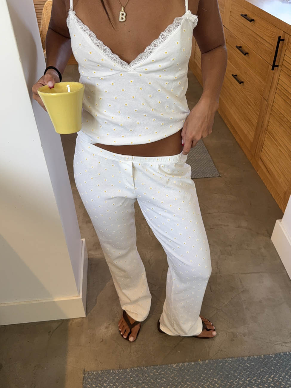 Disse hvide bukser med små gule blomster kombinerer et afslappet snit med et friskt og feminint udtryk. Den bløde bomuldskvalitet og elastiske talje giver maksimal komfort, mens det enkle mønster tilfører et strejf af sommerlig charme. Perfekte som lounge hverdagsbukser, til en afslappet dag ude eller som et hyggeligt sæt sammen med den matchende top eller shorts.