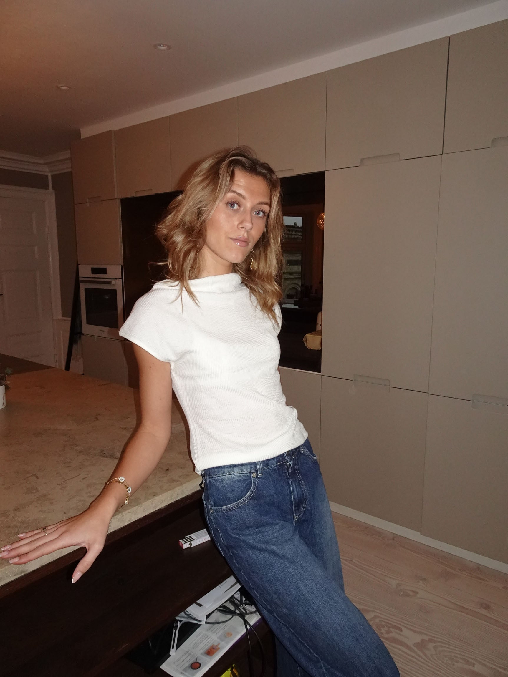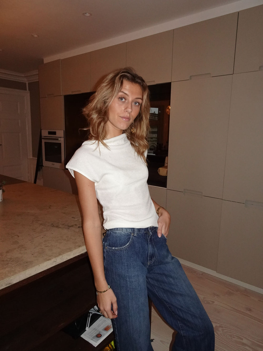 Denne t-shirt er lavet i et tæt ribbet materiale, der er utroligt strækbart og komfortabelt. Den har en unik og alsidig udskæring, som kan justeres, så du kan style den som en oneshoulder eller off-shoulder for et cool og afslappet look. Det tætsiddende design fremhæver figuren, samtidig med at det strækbare materiale giver dig masser af bevægelsesfrihed. Perfekt til både hverdag og fest.