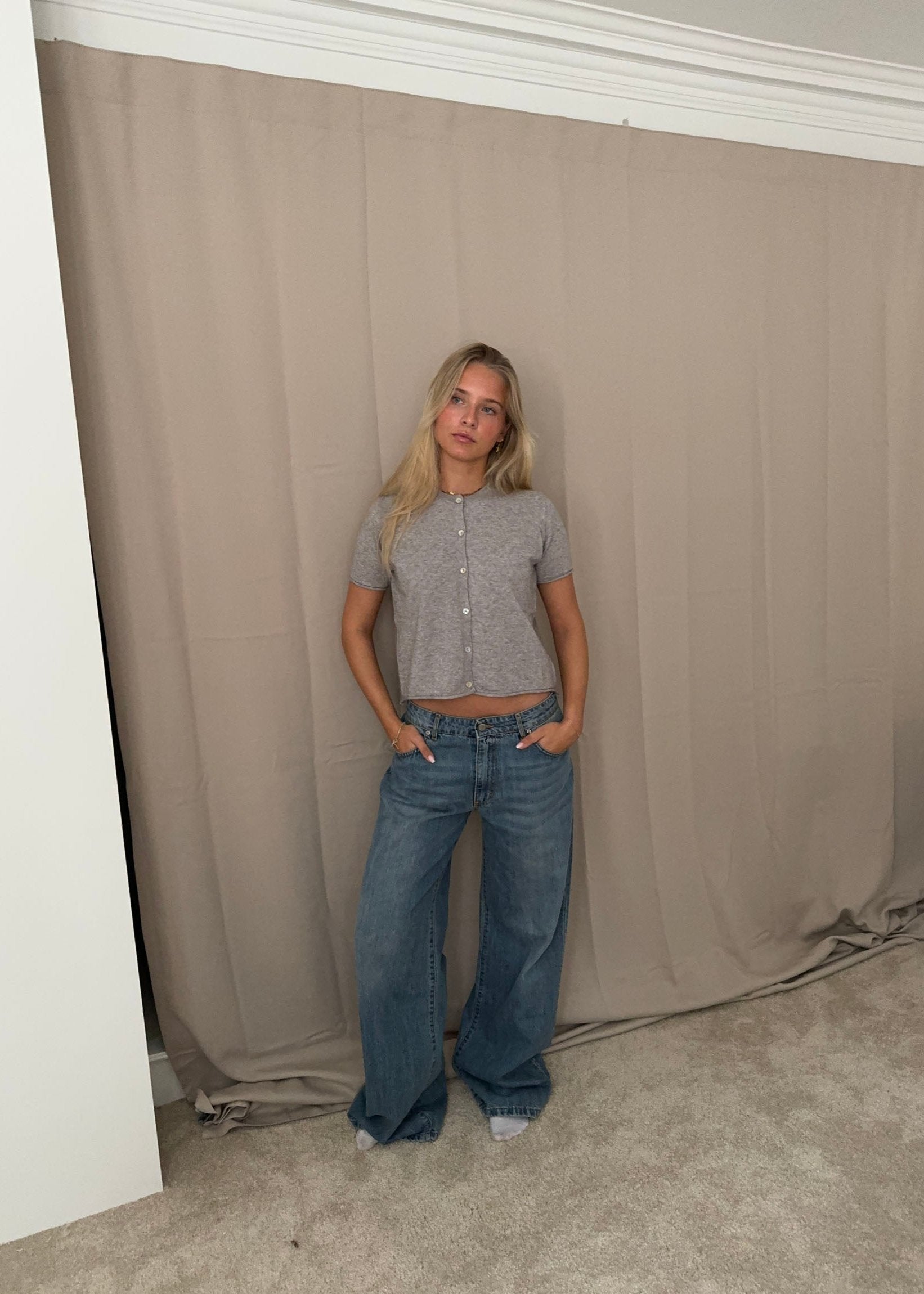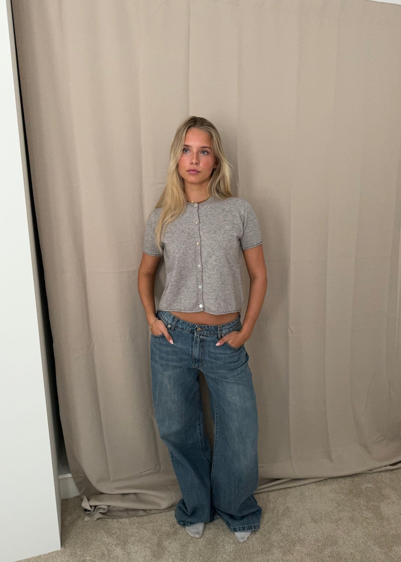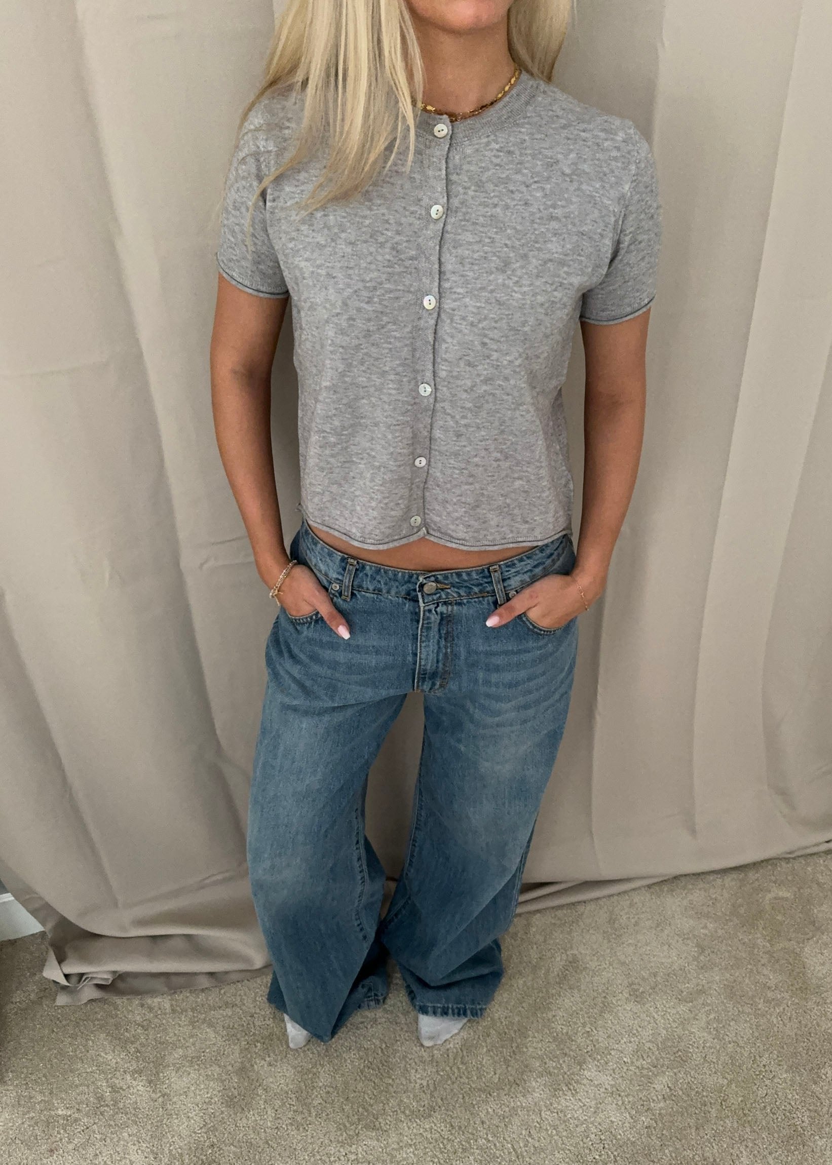 Udforsk vores elegante kortærmet cardigan, skabt i let strikket materiale for maksimal komfort. Den har knapper foran og en figursyet pasform, der fremhæver din silhouette. pasformen passer perfekt til både hverdag og festlige begivenheder.