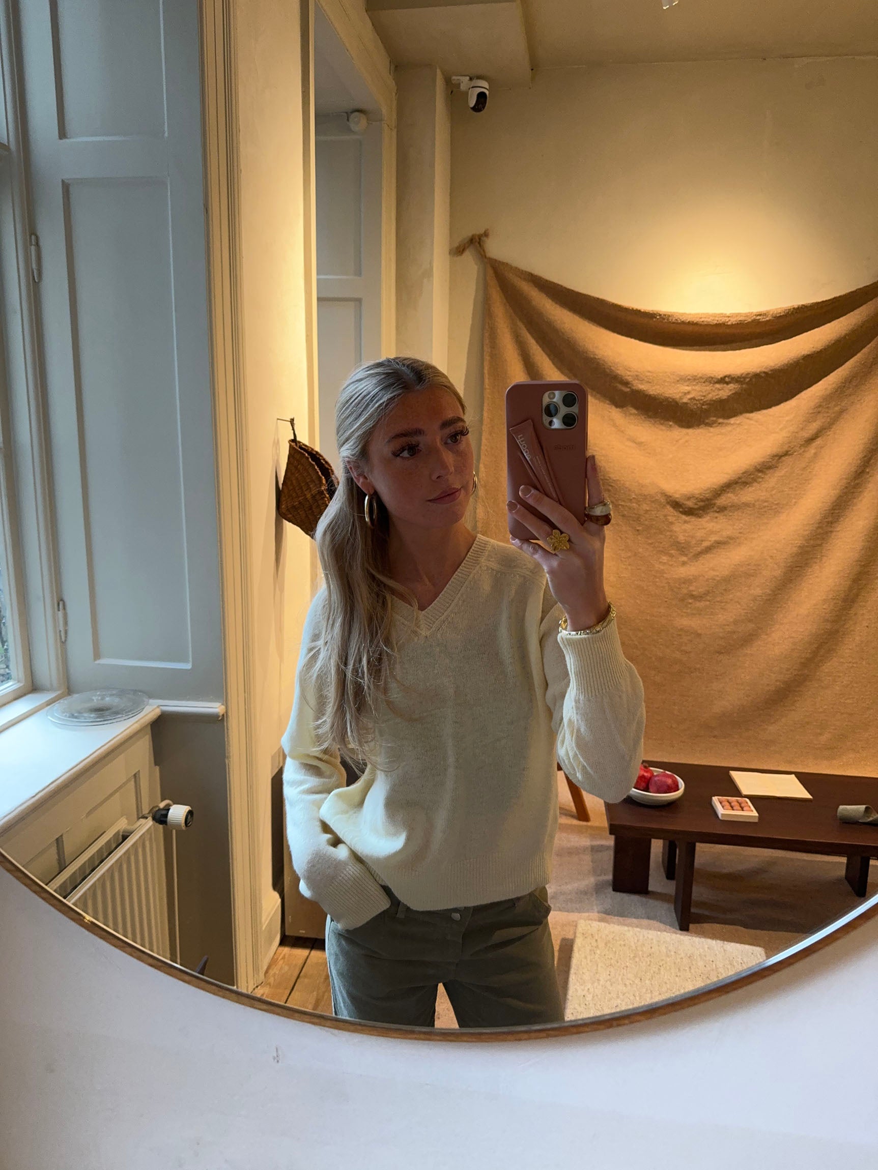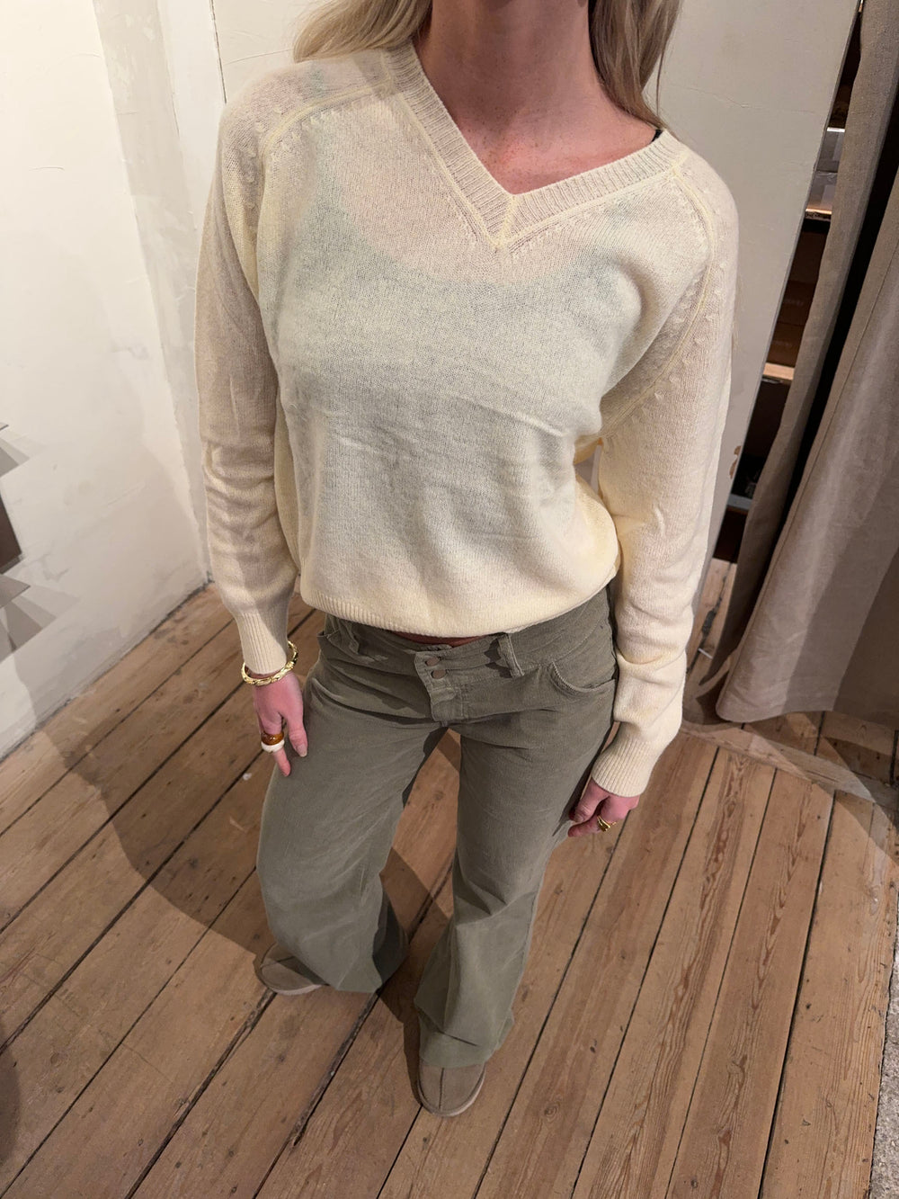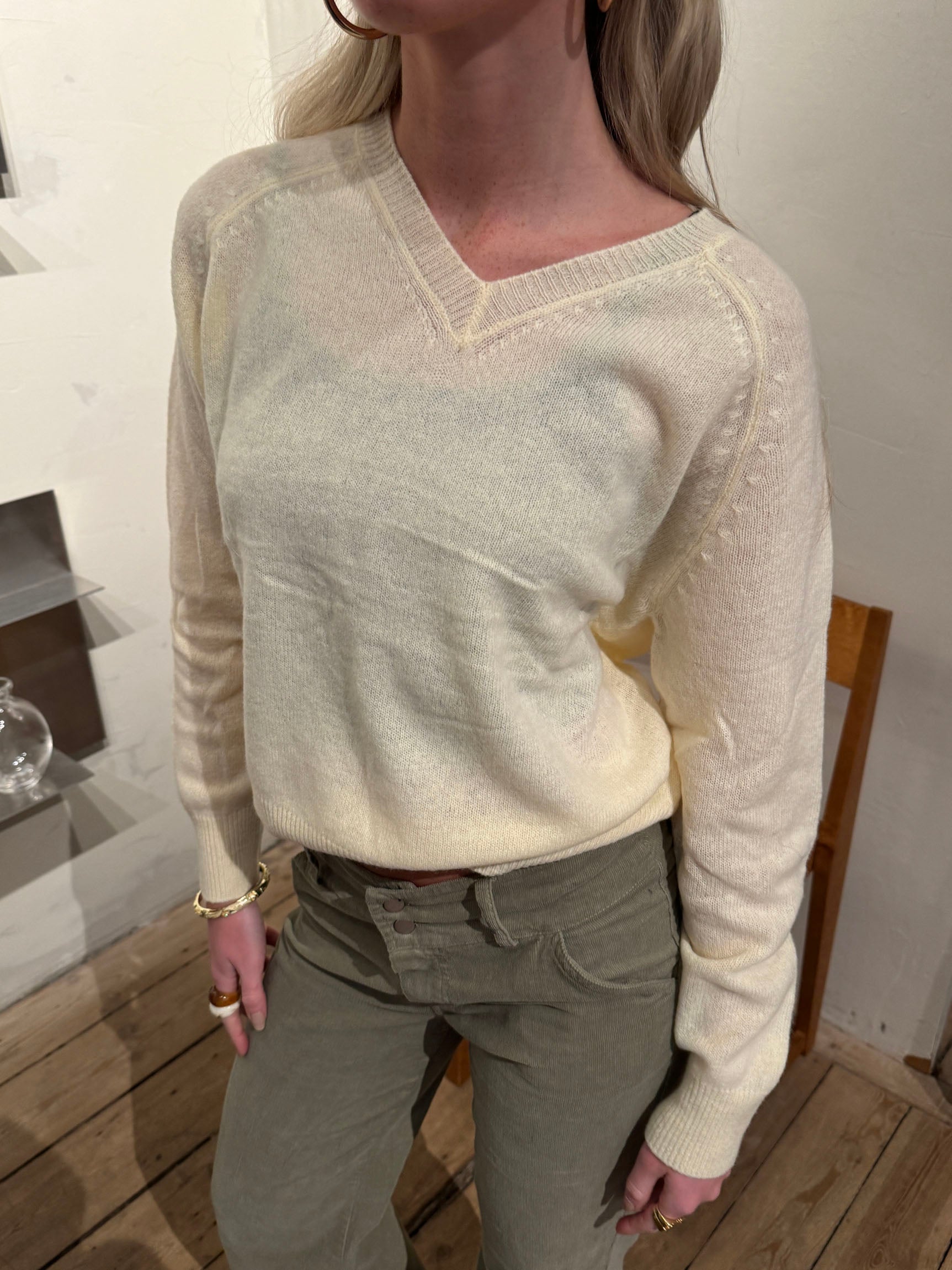 Denne sweater med v-udskæring er lavet i blødt uld, der gør den perfekt til alle sæsoner. De fine ribdetaljer tilføjer et klassisk, stilrent touch. Komfortabel og alsidig, den holder dig varm om vinteren og let om sommeren. En tidløs favorit til enhver garderobe.