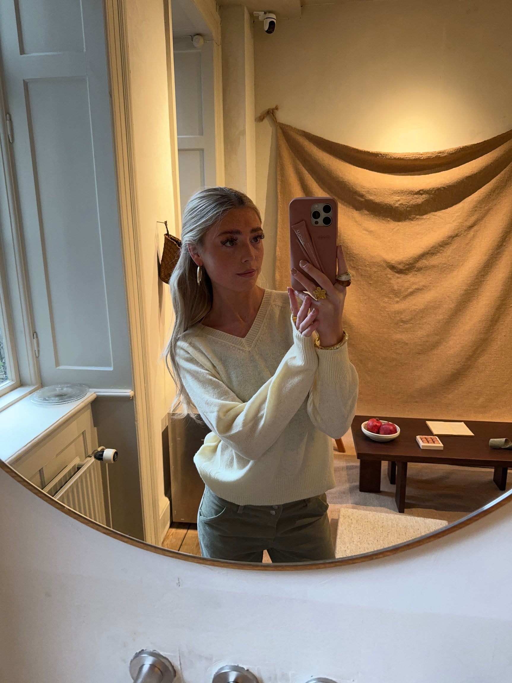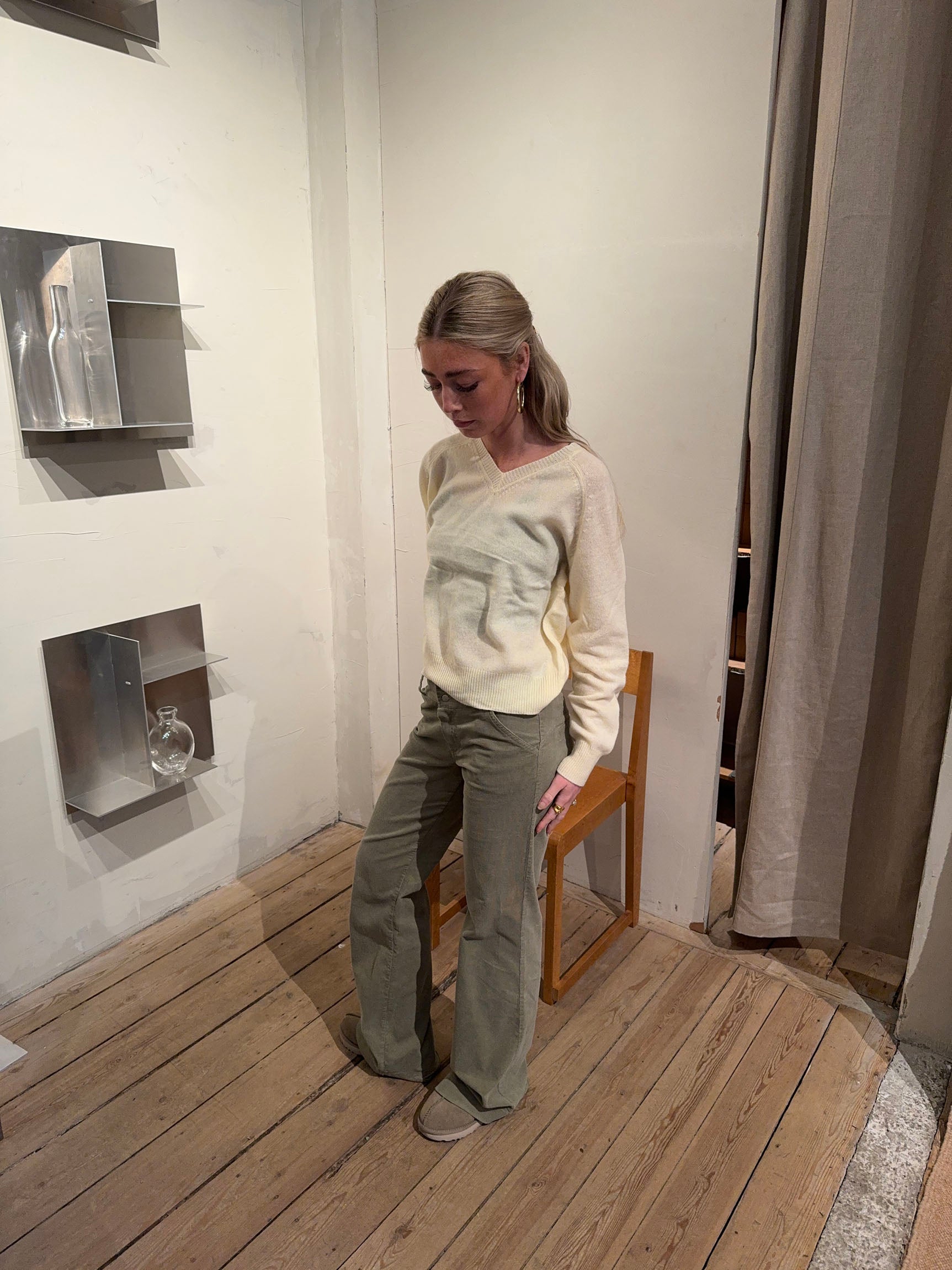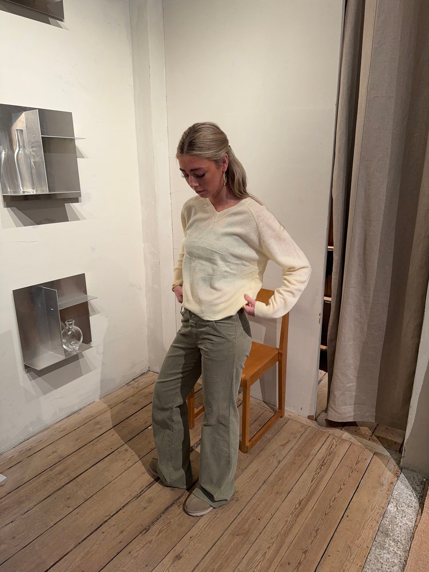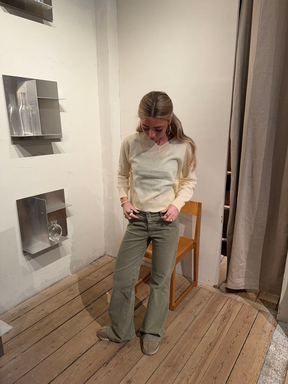 Denne sweater med v-udskæring er lavet i blødt uld, der gør den perfekt til alle sæsoner. De fine ribdetaljer tilføjer et klassisk, stilrent touch. Komfortabel og alsidig, den holder dig varm om vinteren og let om sommeren. En tidløs favorit til enhver garderobe.