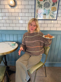 Rula striktrøje med striber - Hvid/brun