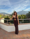 Denne klassiske maxikjole i en varm brun farve er perfekt til et simpelt tidløst look. De tynde stropper giver et elegant touch og gør den nem og anvendelig. Derudover hjælper den justerbare ryg med at fremhæve silhuetten og giver den perfekte pasform.