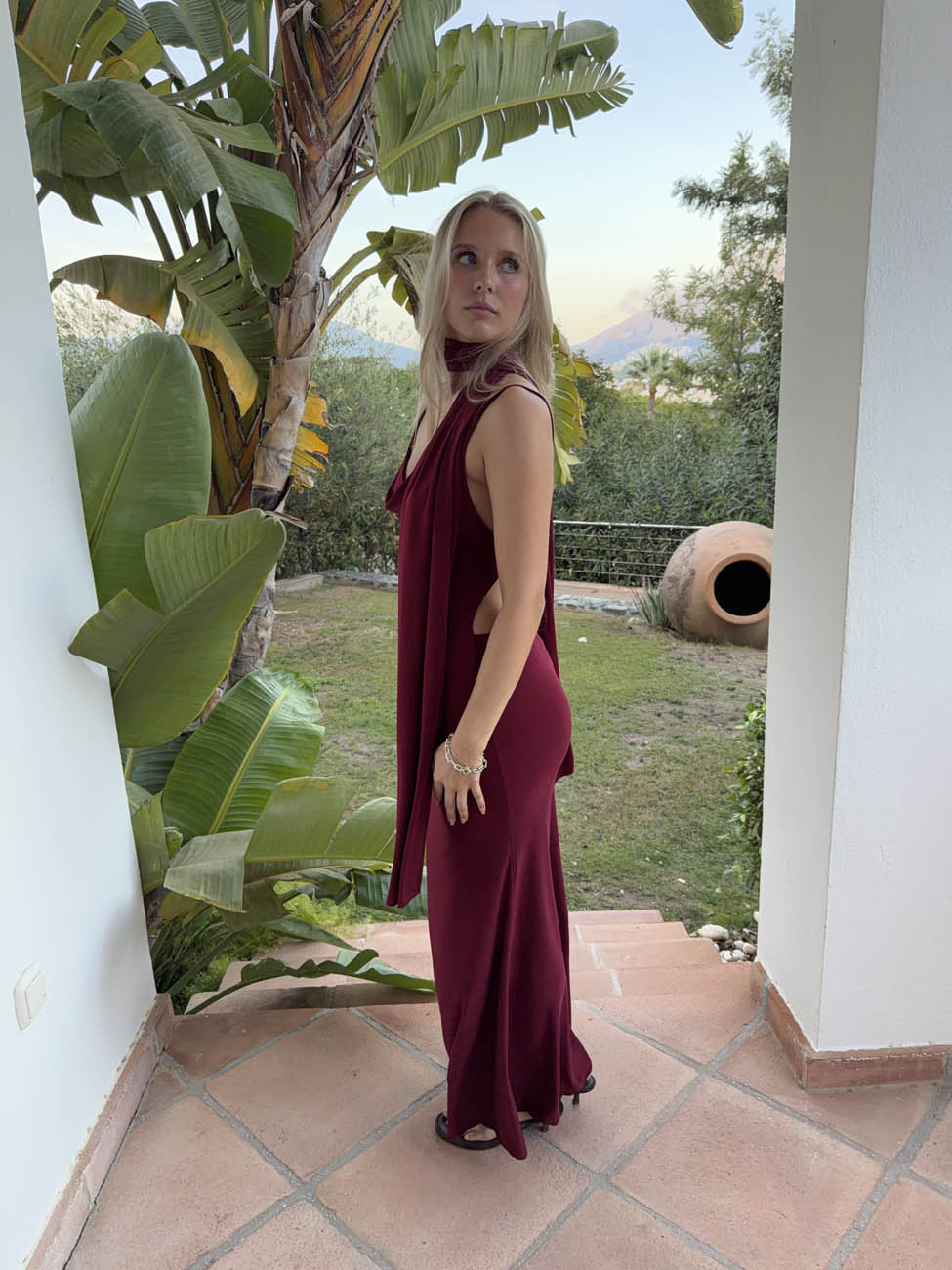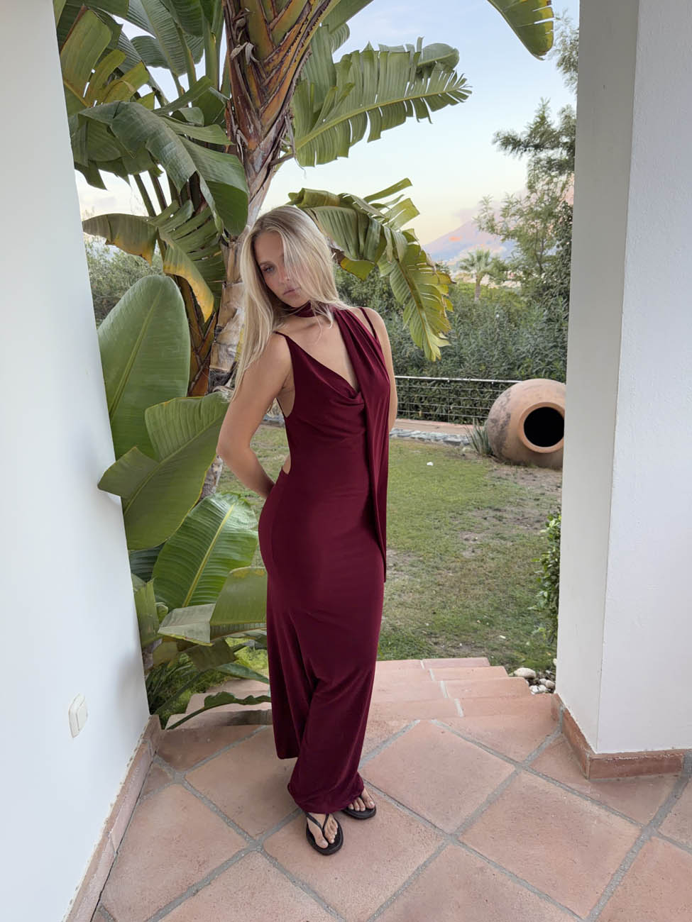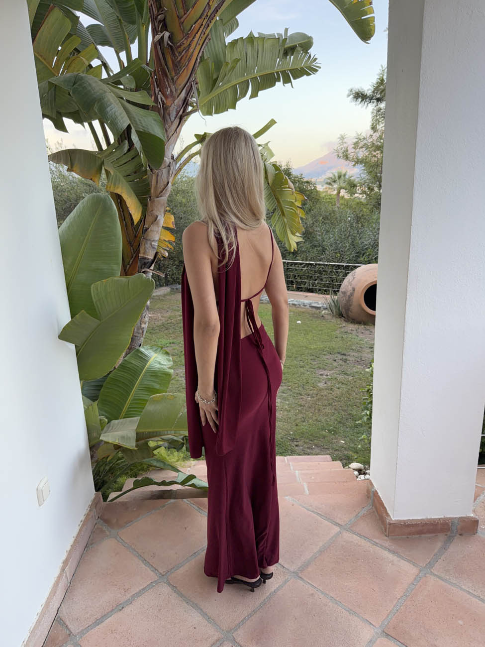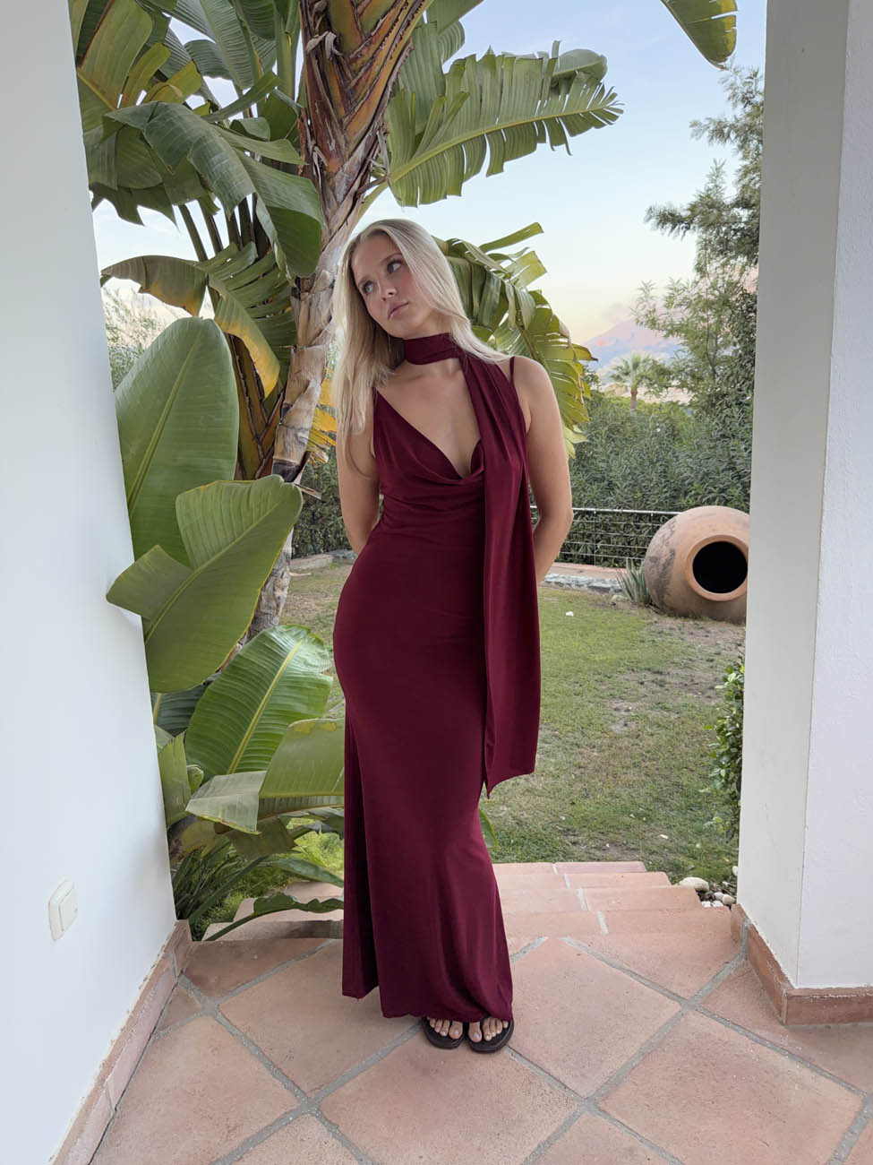 Vinja maxikjole med sjal - Rød/bordeaux