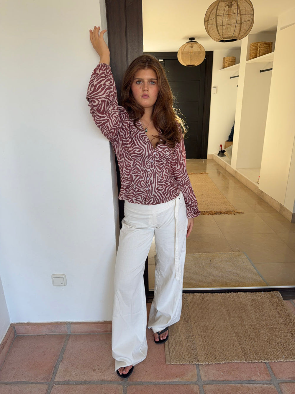 Alissa top med mønster - Rød/hvid