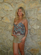 Denne mønstrede top forener varme farver og unikt design i et let og feminint snit. De justerbare stropper og V-udskæringen skaber en flatterende silhuet, mens de brunlige og rødlige nuancer giver et levende, kunstnerisk udtryk.