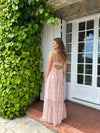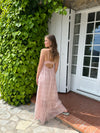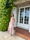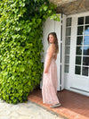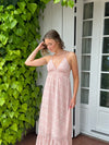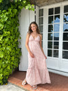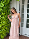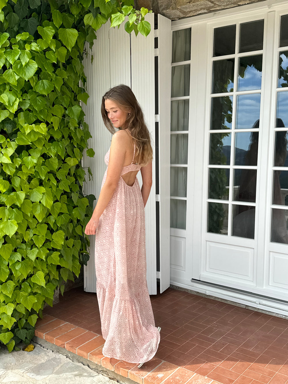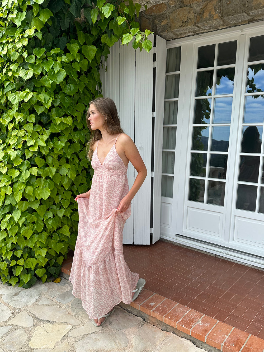 Vores hvide Magdalina kjole har det fineste lyserøde mønster, som giver det perfekte sommerlook! Kjolen har maxi-pasform flot v-udskæring. Kjolen er i et let materiale og har en løs pasform, som gør den essentiel til varme sommerdage.