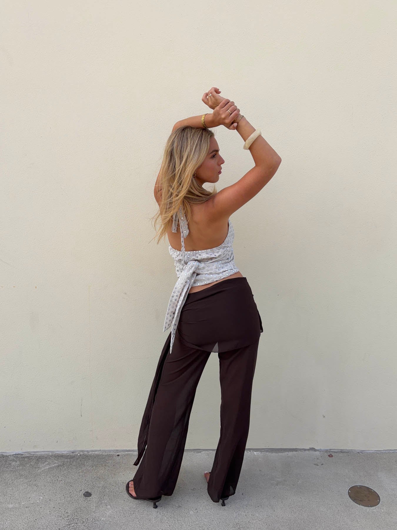 Stiney halterneck top med palietter - Beige