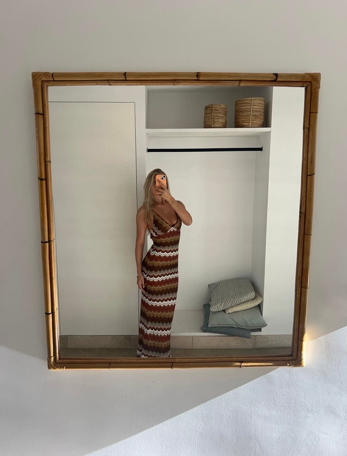 Denne smukke kjole i jordfarve mønster kombinerer komfort og stil i ét elegant design. Det naturlige farvespil giver en tidløs æstetik, der passer perfekt til både hverdagen og særlige lejligheder.