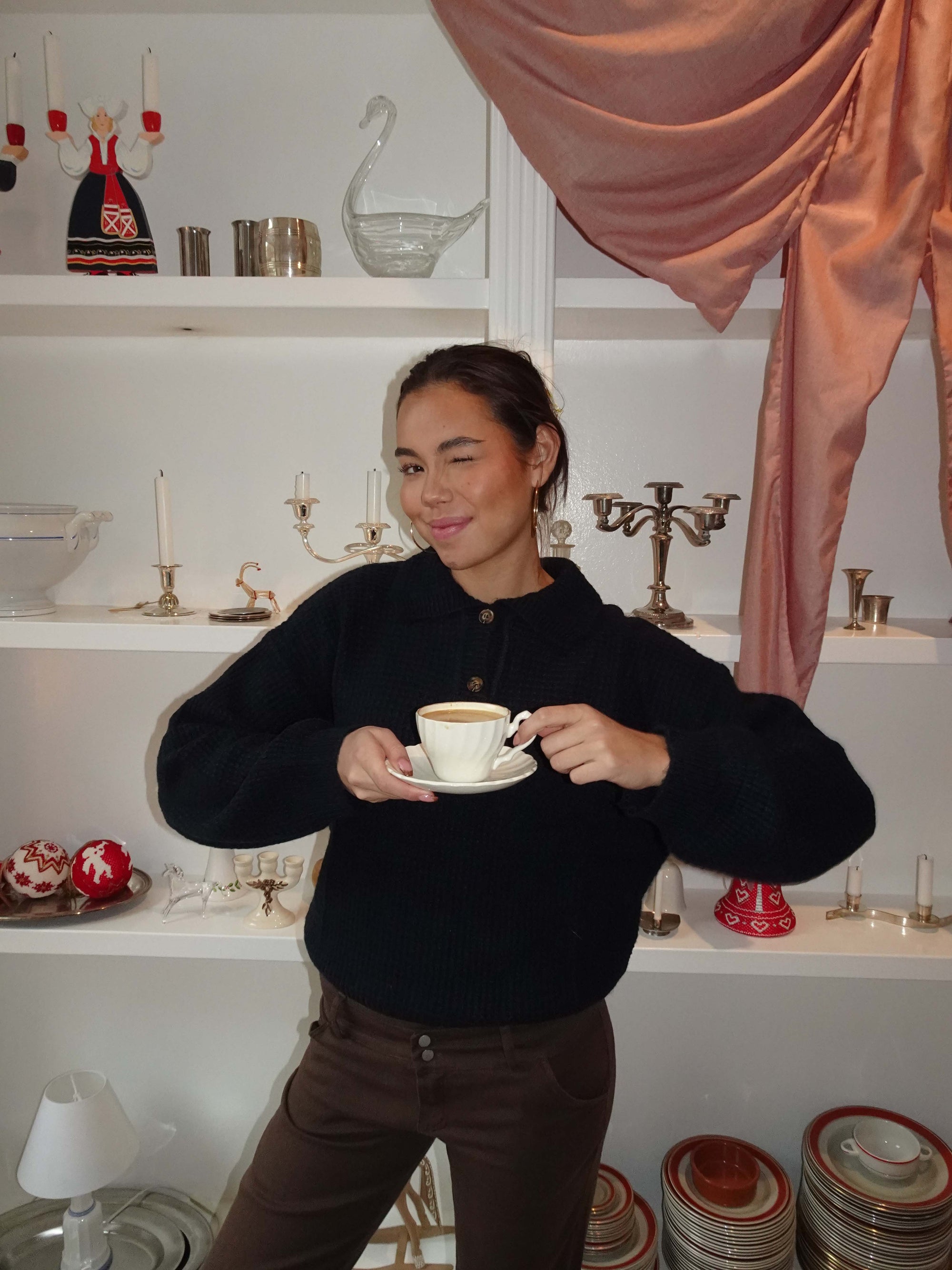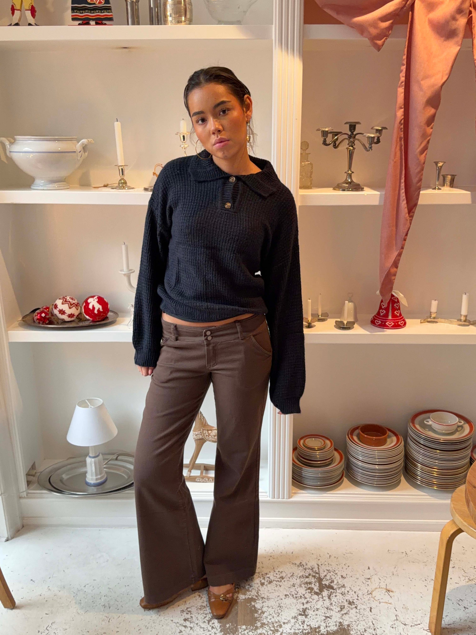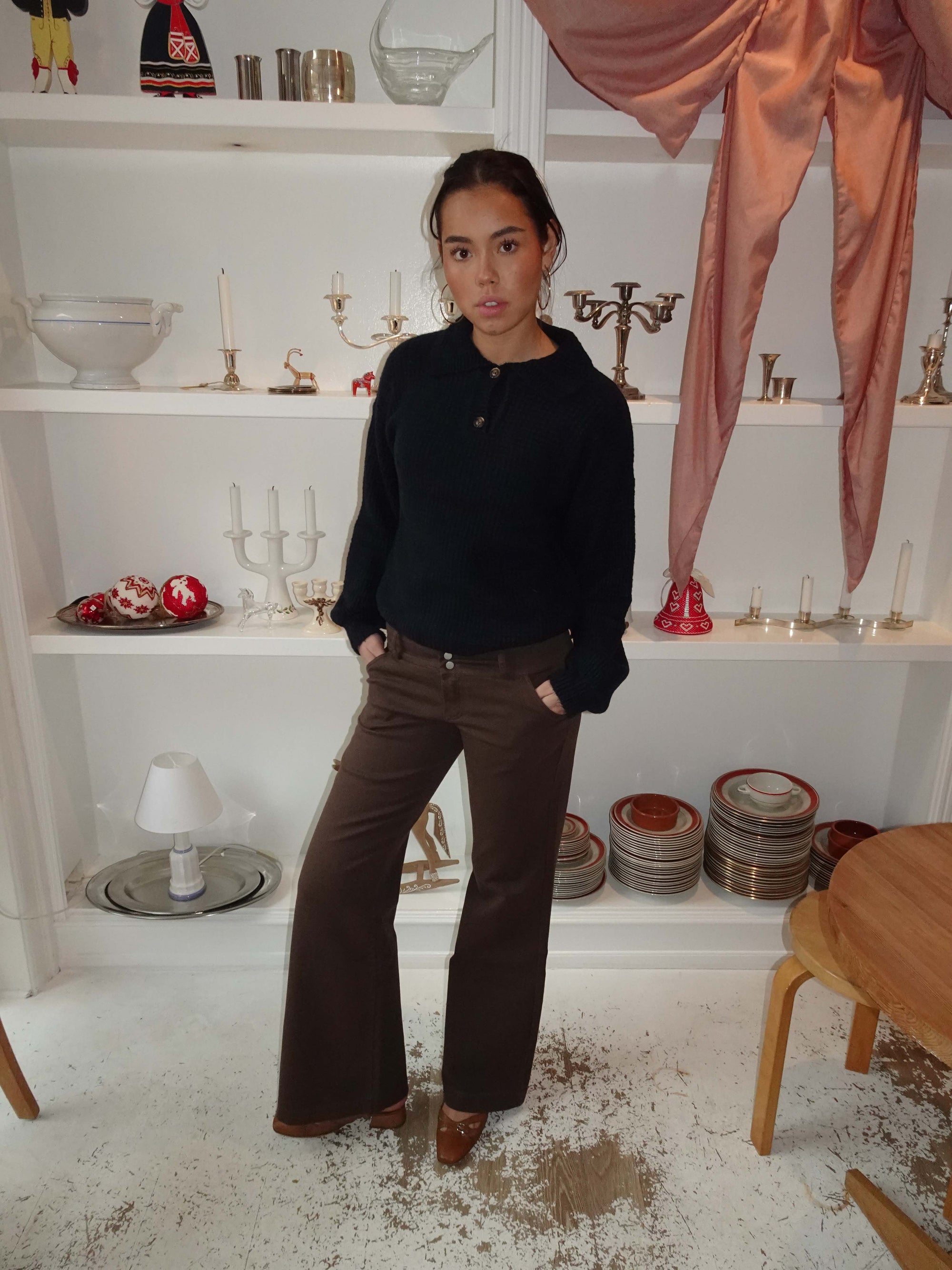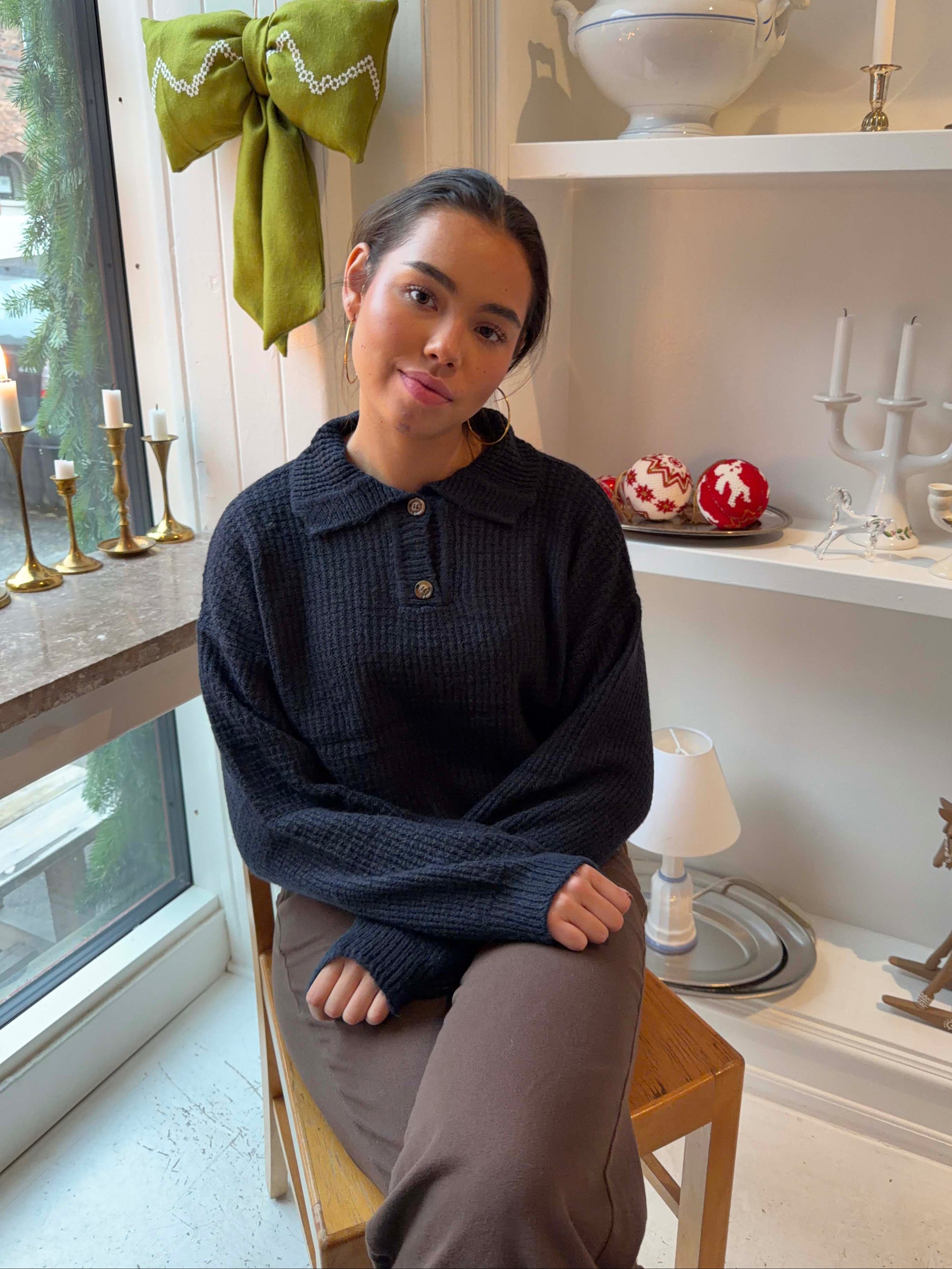 Denne striktrøje er både varm og alsidig. Den er lavet i blødt strikket materiale, der holder dig varm hele året. Med en lille krave og to knapper får du et pænt og stilfuldt look. De lange ærmer og den løse pasform gør den både komfortabel og afslappet. Uanset sæsonen er denne striktrøje perfekt til at tilføje en ekstra lag varme og stil til dit outfit.