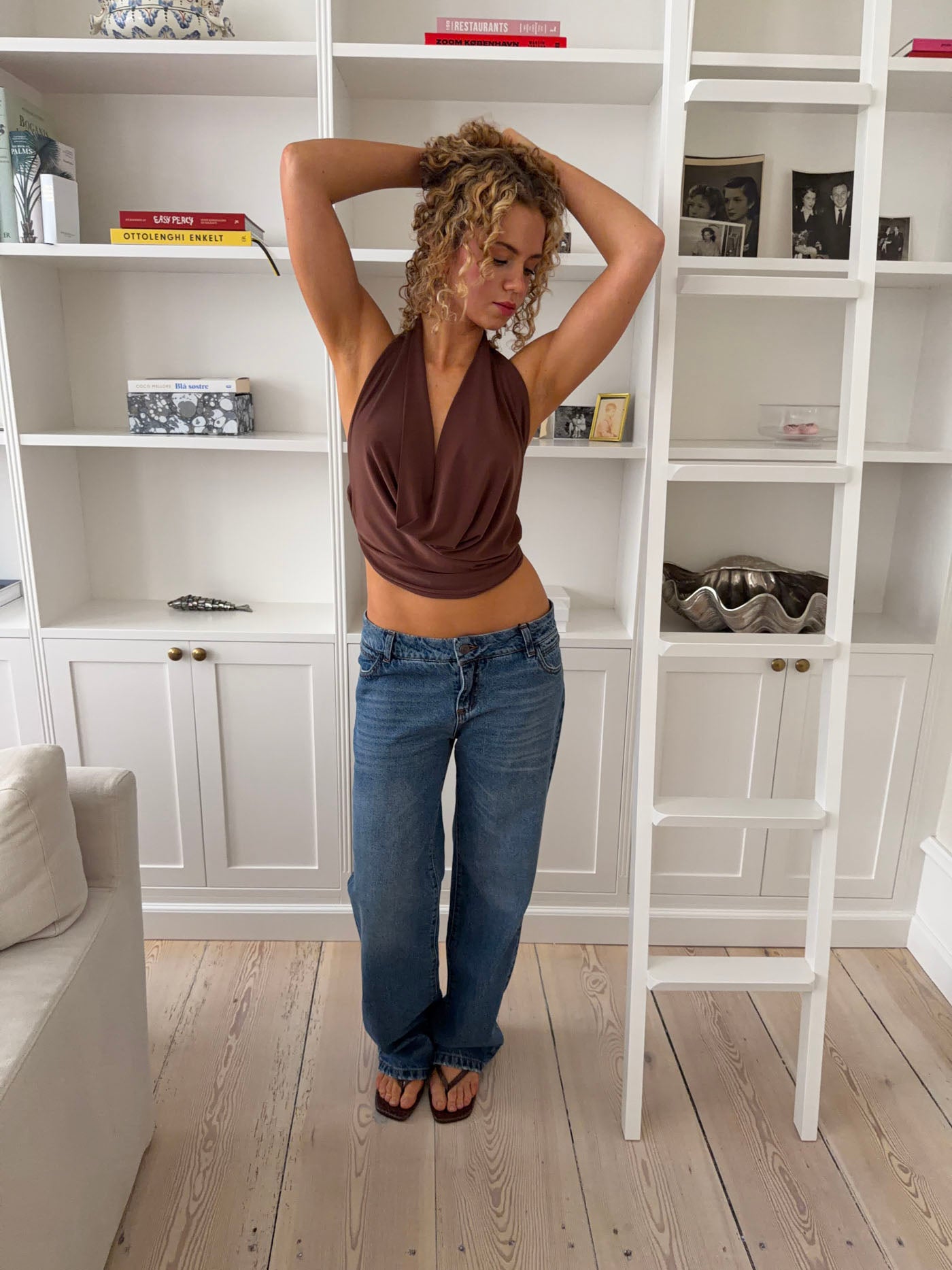 Toppen bindes i nakken, så du selv kan justere pasformen, og den lette kvalitet gør den ideel til varme dage og aftener. Brug den til alt fra højtaljede bukser til flowy nederdele – perfekt til både strand og byliv.