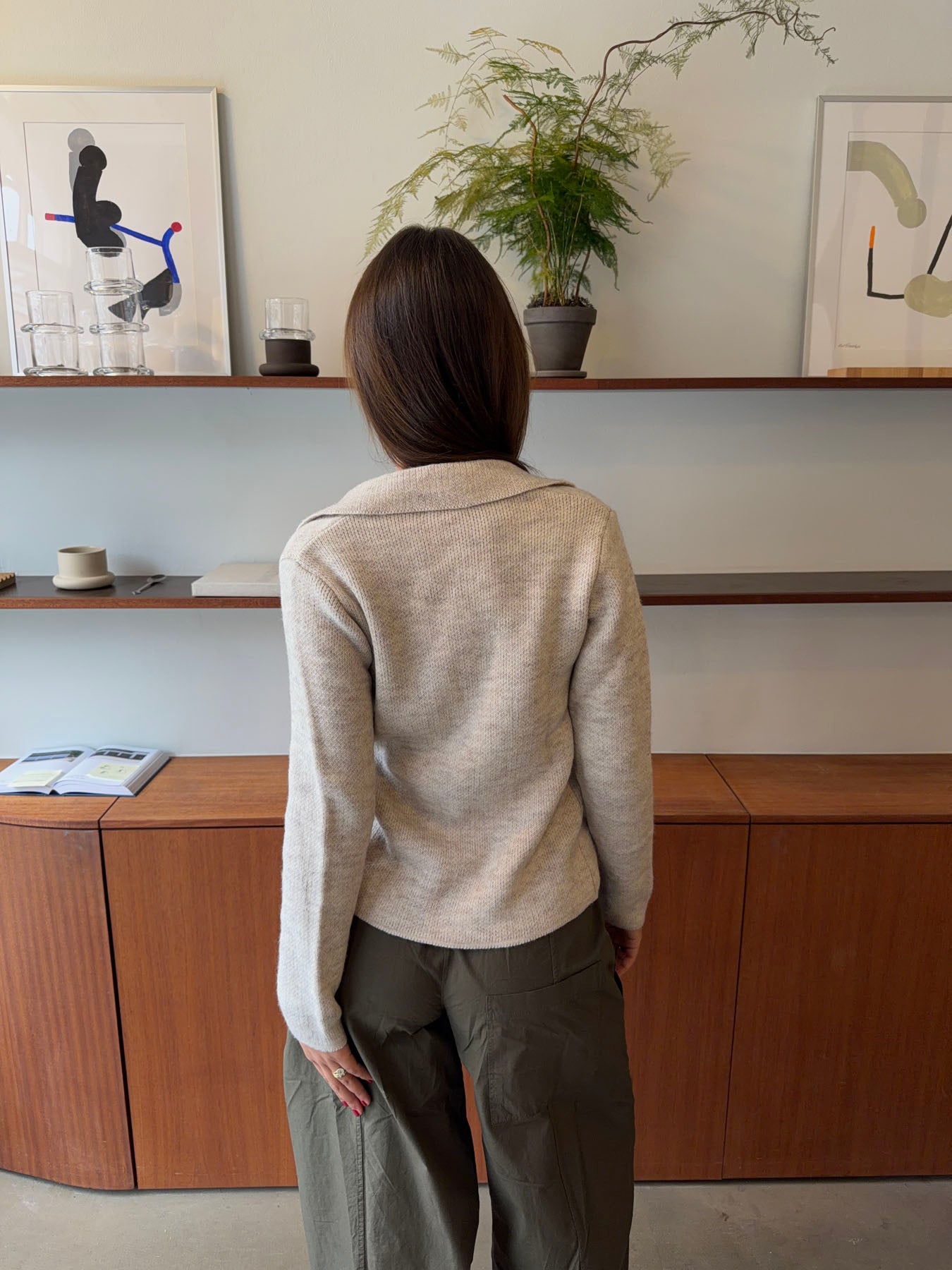 Melatine striktrøje med krave - Beige