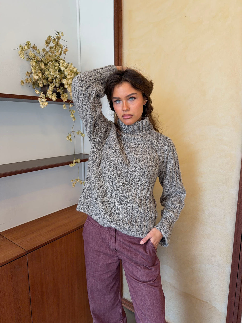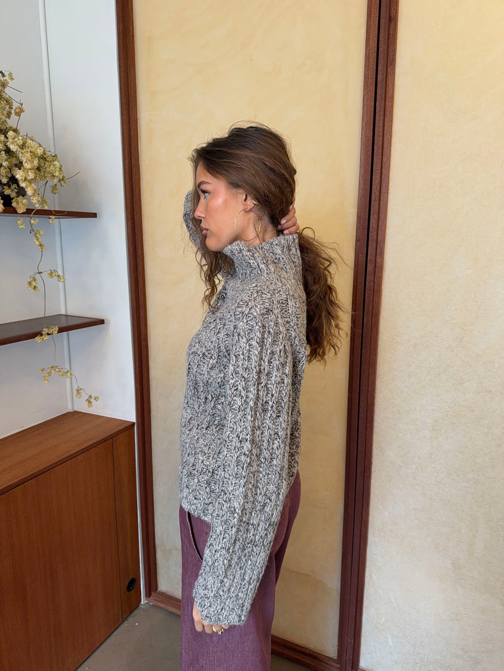 Med sin høje hals, lange ærmer og bløde uldblanding er Tikka ideel til kolde dage - både til hverdagsbrug og hyggelige weekender. Den melerede grå farve gør den nem at style og giver et klassisk, skandinavisk look.
