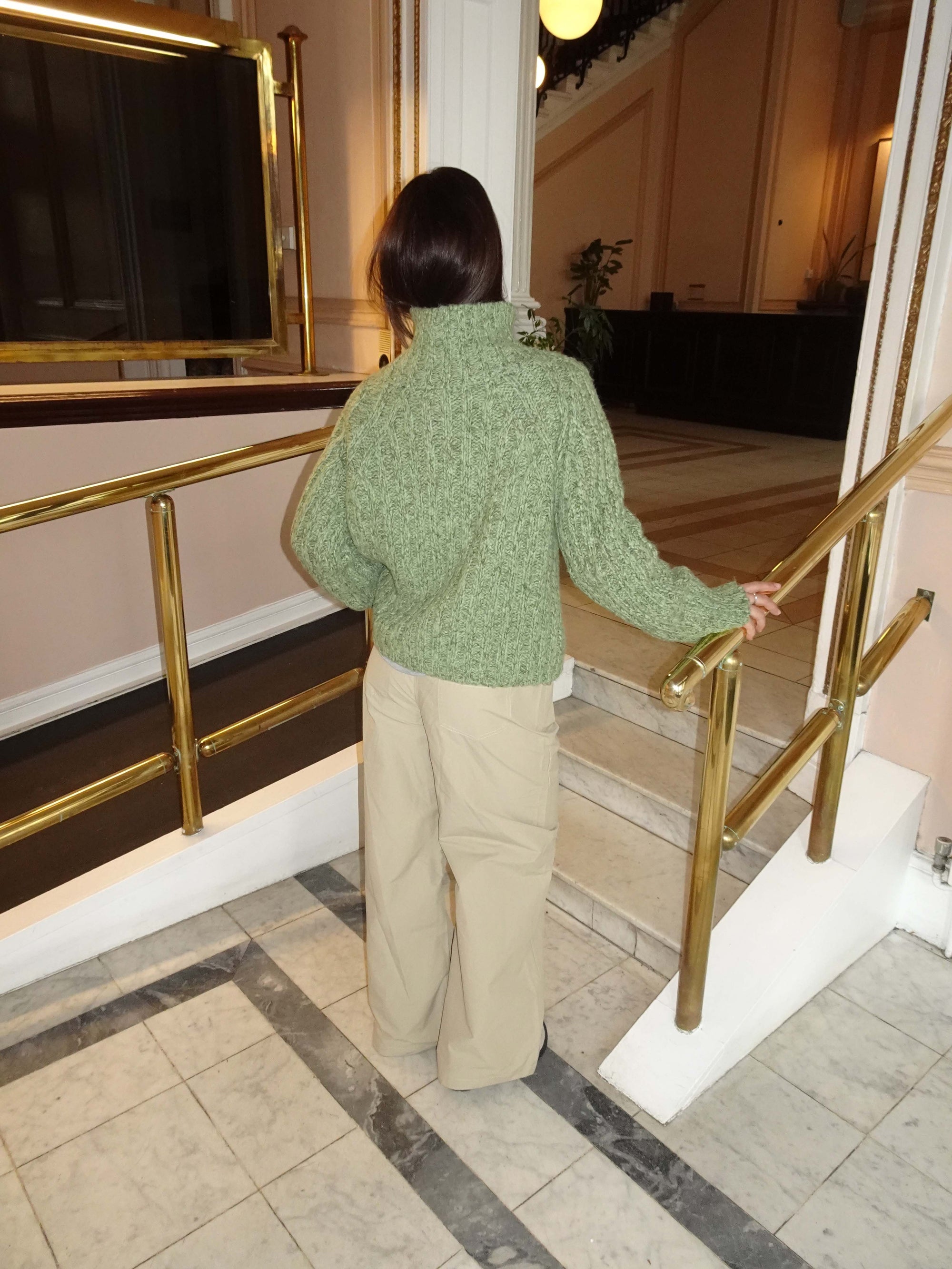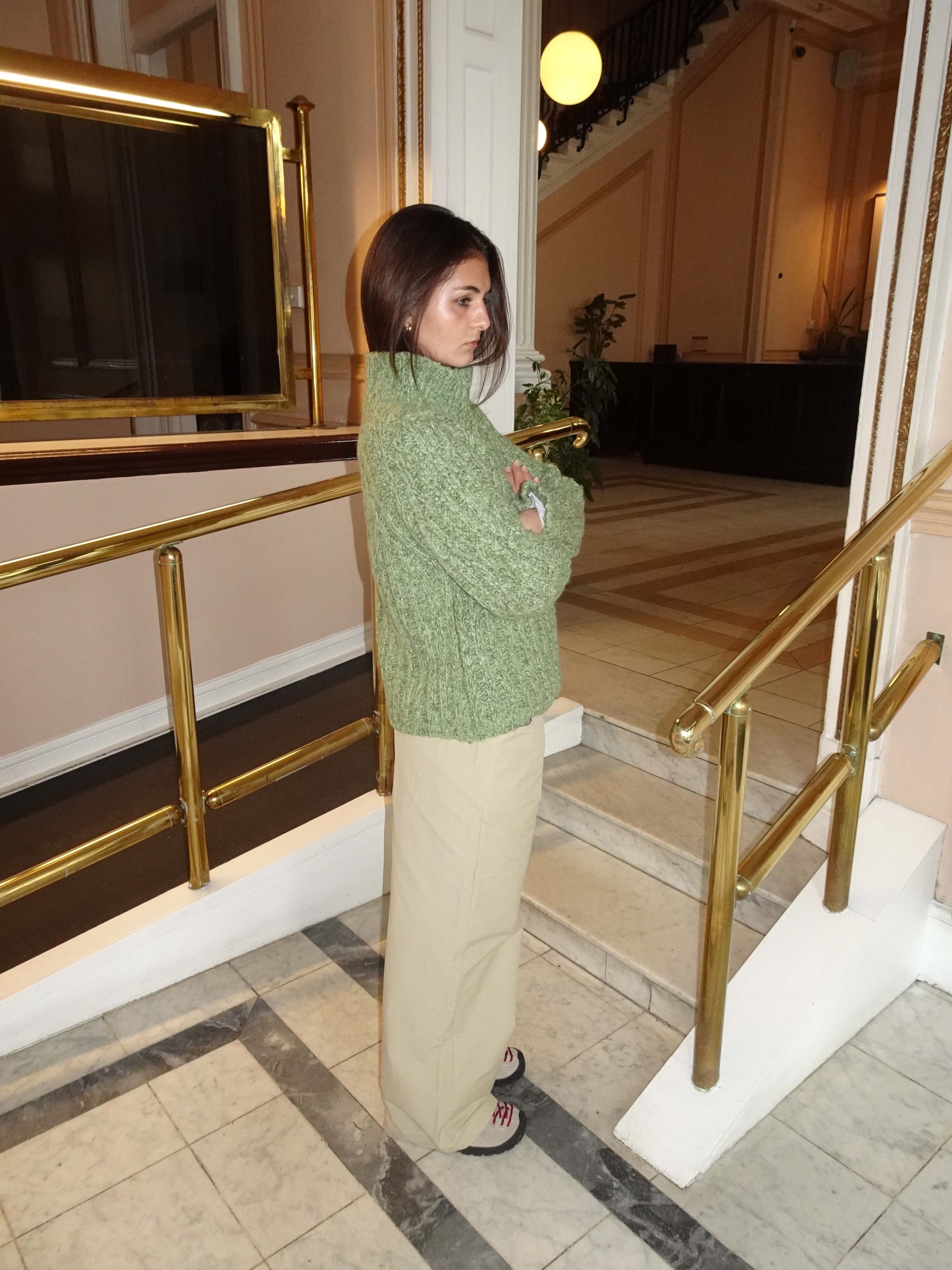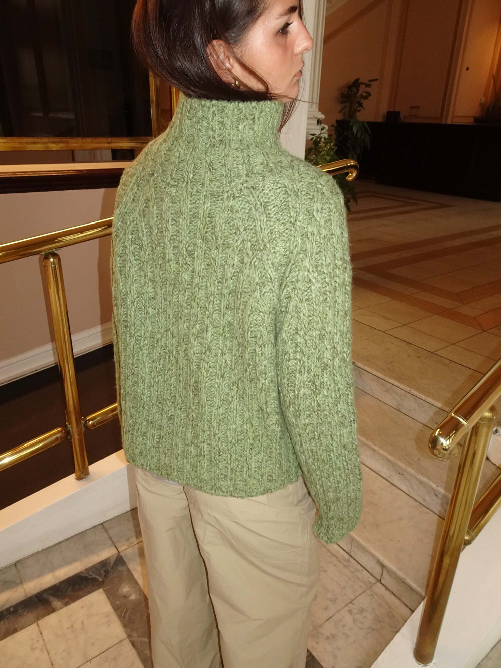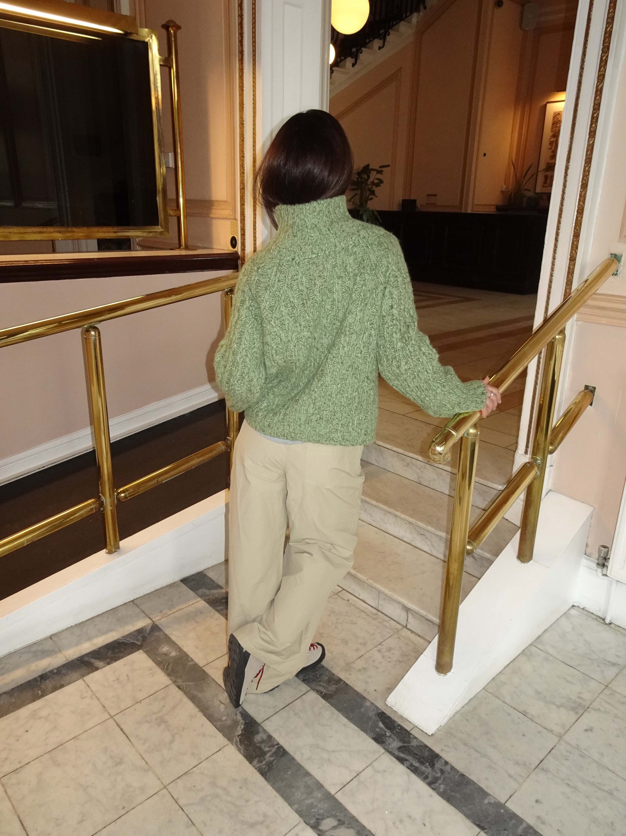Med sin høje hals, lange ærmer og bløde uldblanding er Tikka ideel til kolde dage - både til hverdagsbrug og hyggelige weekender. Den melerede grønne farve gør den nem at style og giver et klassisk, skandinavisk look.