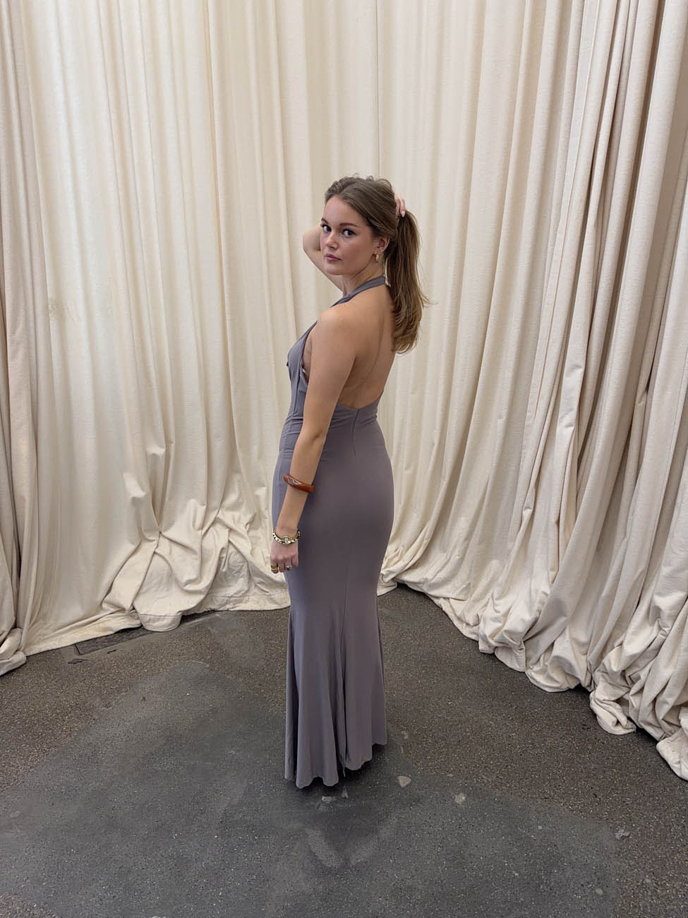 Vores elegante Pauline bandeaukjole i en smuk taupe nuance er skabt i et blødt, silkeblødt stretchmateriale, der falder let og smukt langs kroppen. Den lange, slanke silhuet giver et dramatisk og stilrent udtryk, perfekt til særlige anledninger, fester eller aftenbegivenheder.