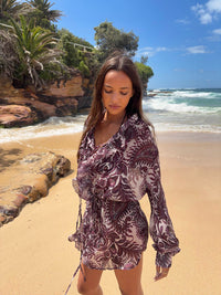 Rose kjole med flæser - Mørkebrun