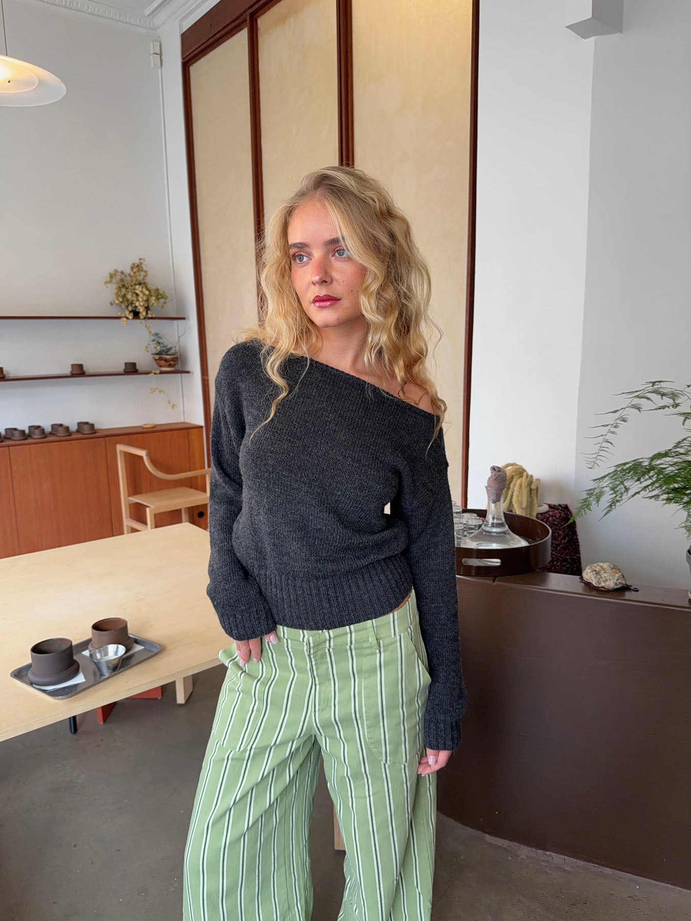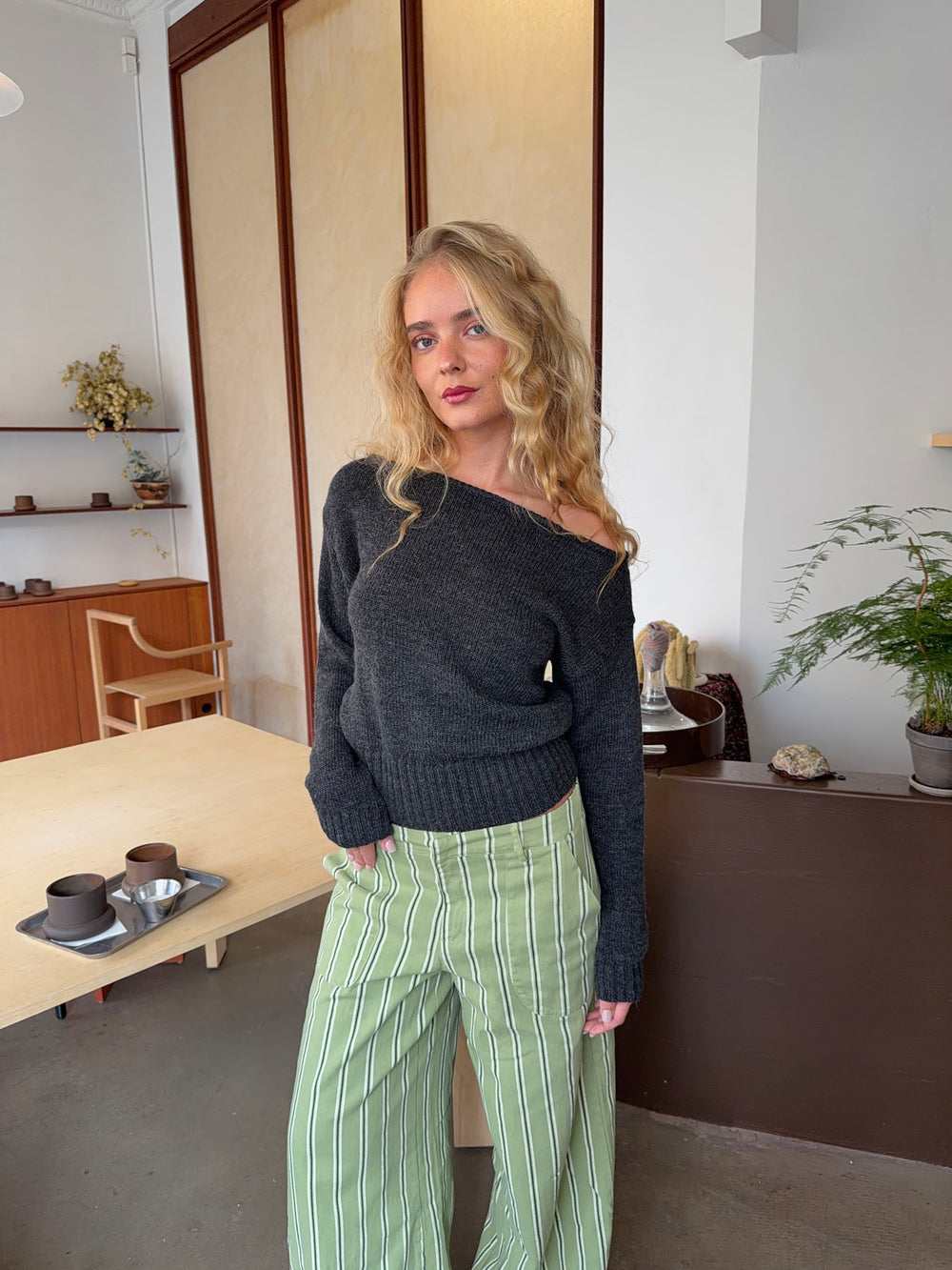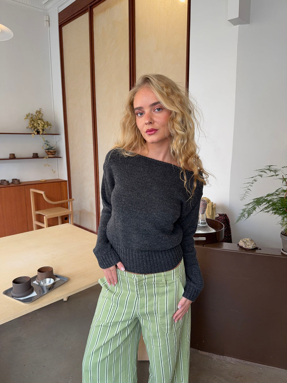 Loni one shoulder striktrøje i uld - Grå