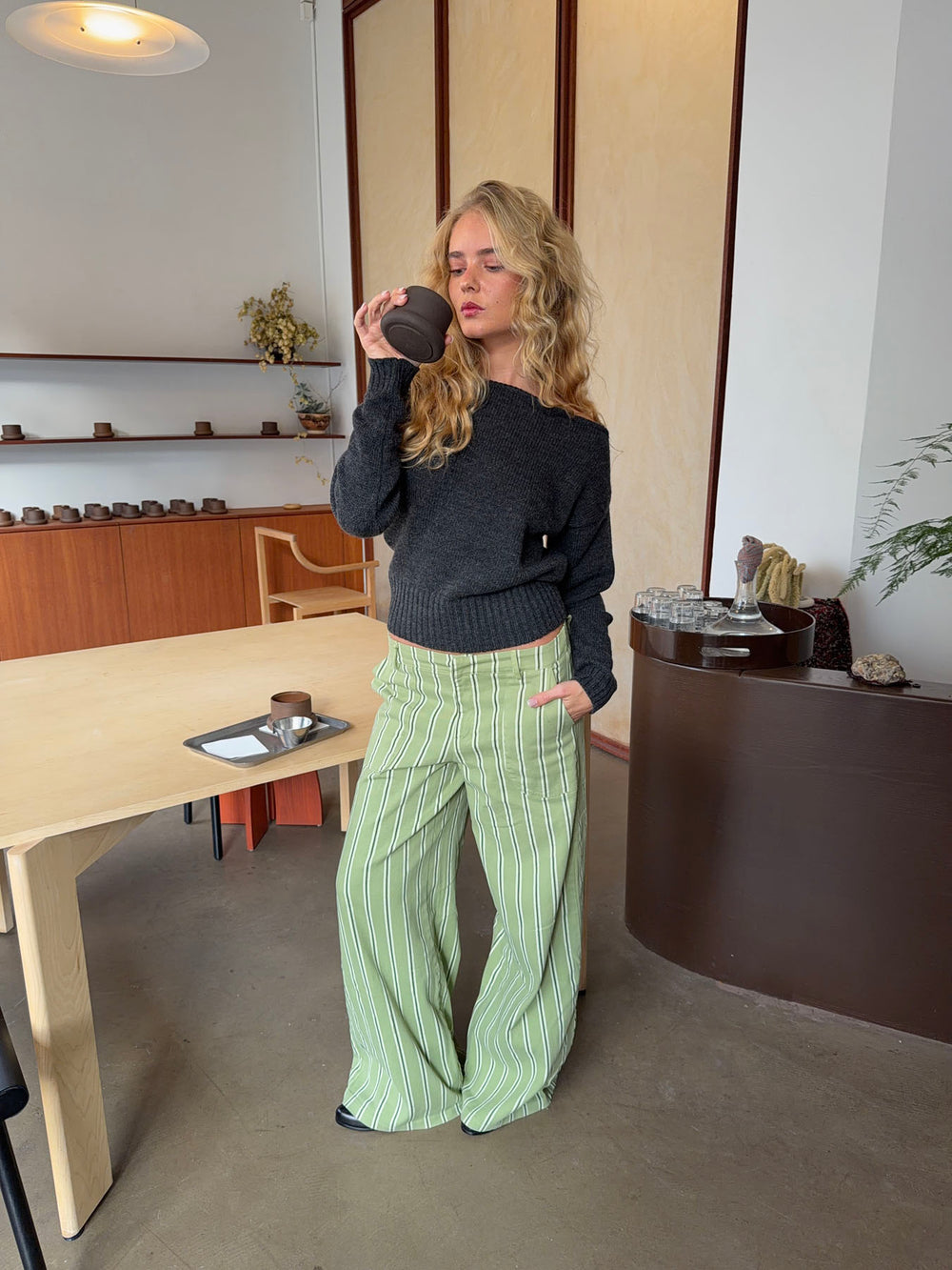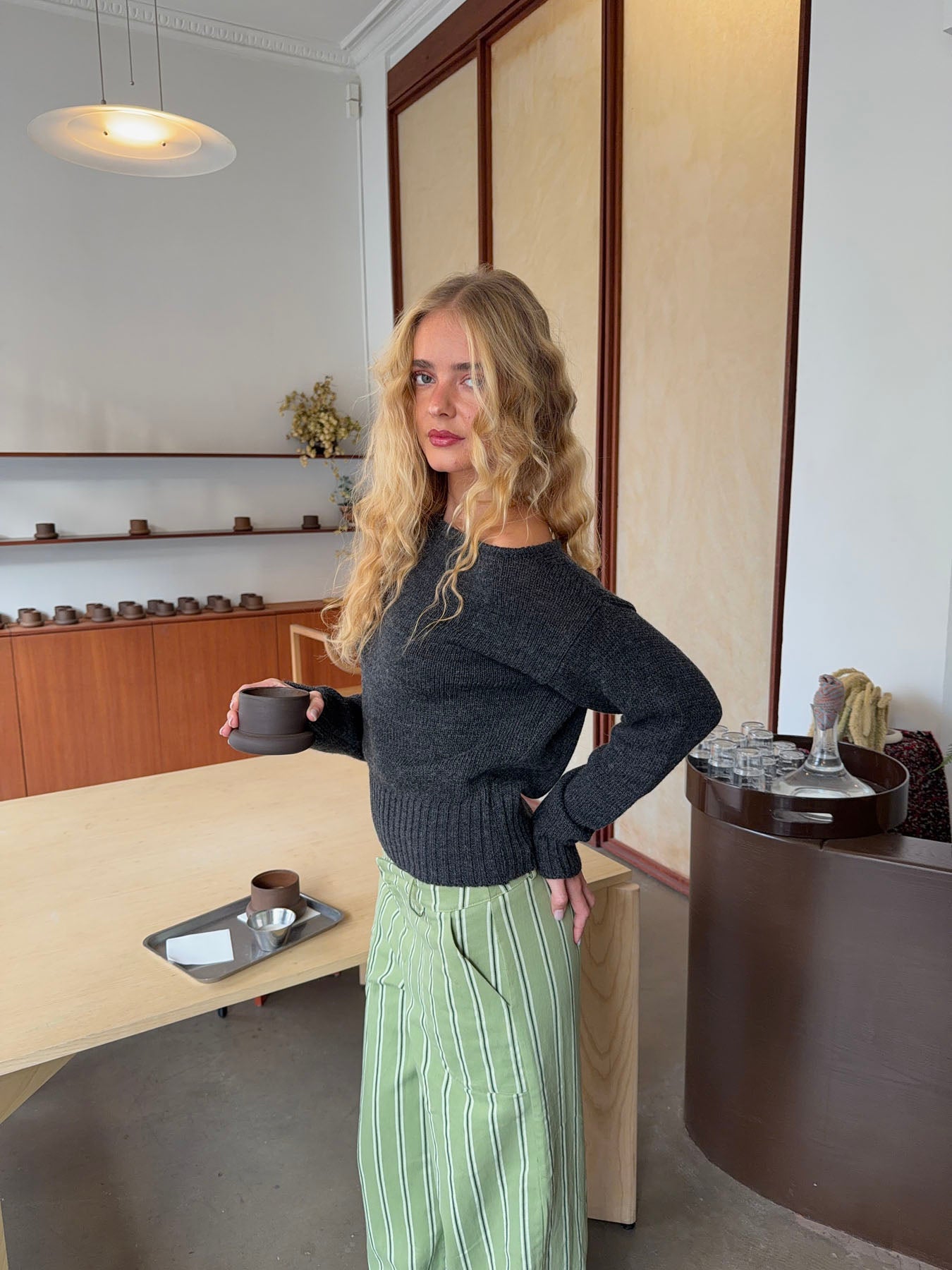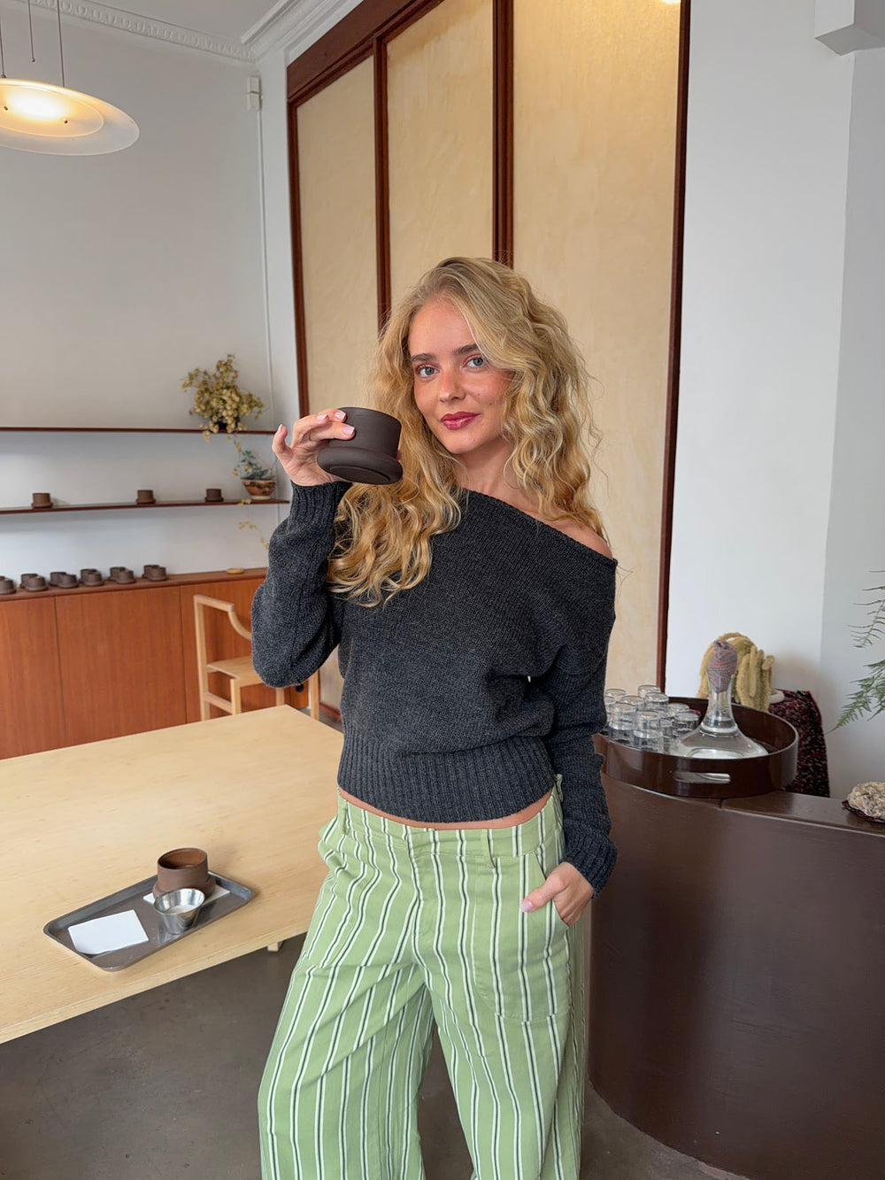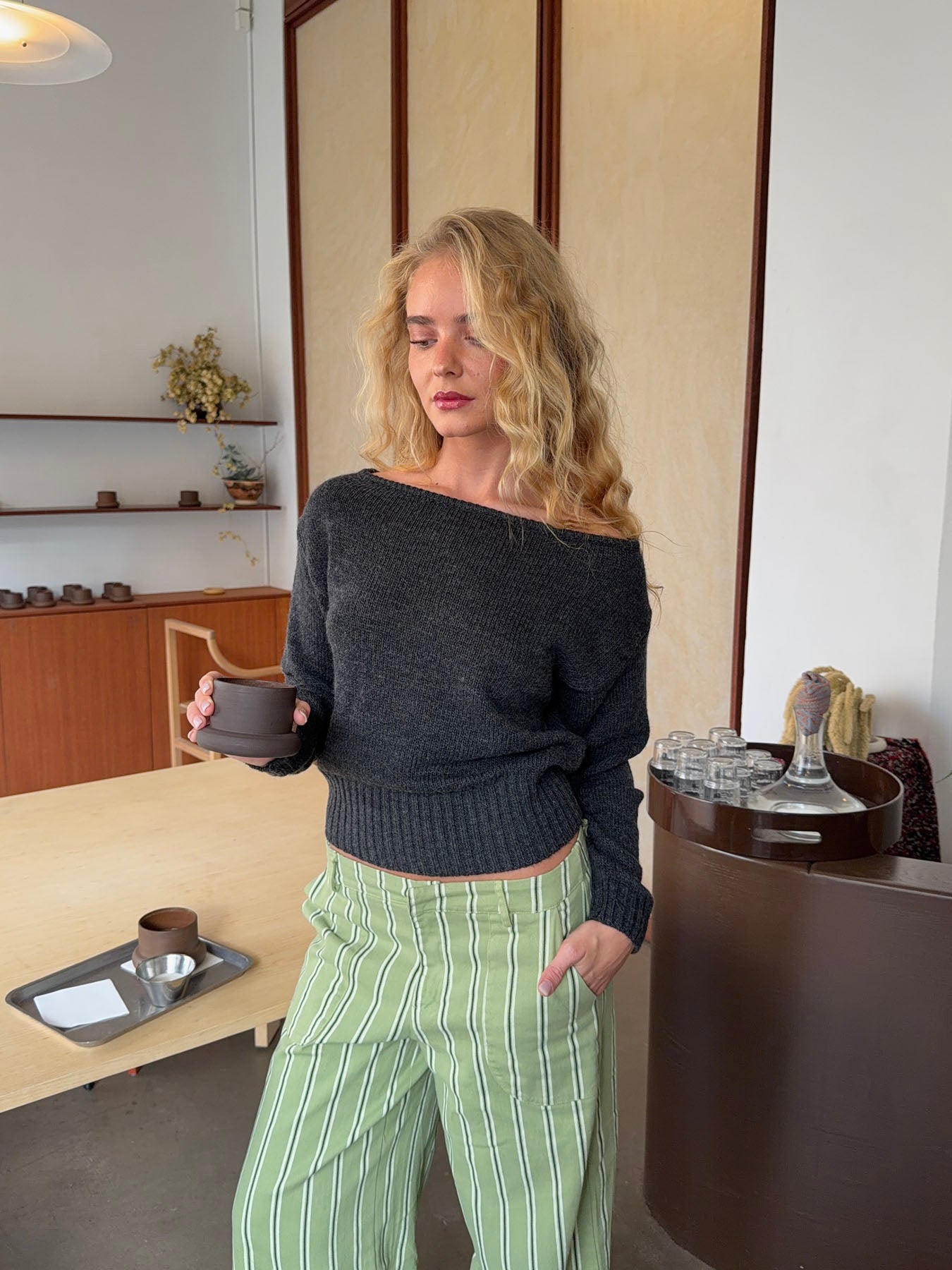 Loni one shoulder striktrøje i uld - Grå