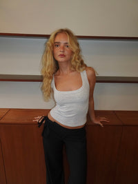 Denne hvide ribtop er et tidløst basic-item, der forener komfort og stilren enkelhed. Den bløde, strækbare kvalitet giver en flatterende pasform og gør toppen perfekt til både hverdag og lag-på-lag styling. Det klassiske snit med rund hals og brede stropper giver et sporty, men feminint udtryk, der passer til alt fra jeans til nederdele. Et must-have i garderoben – enkel, alsidig og altid moderne.