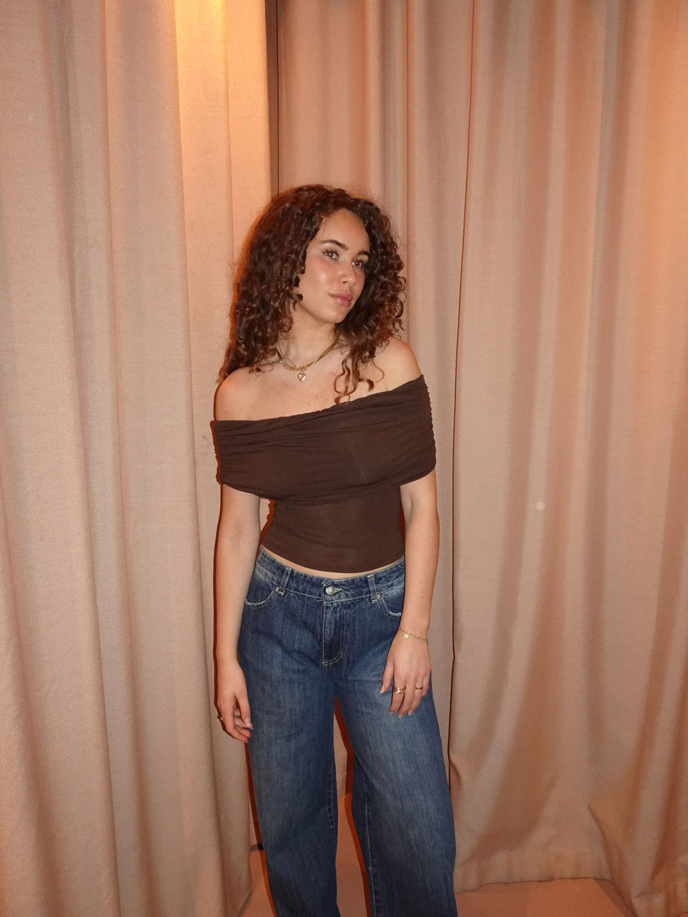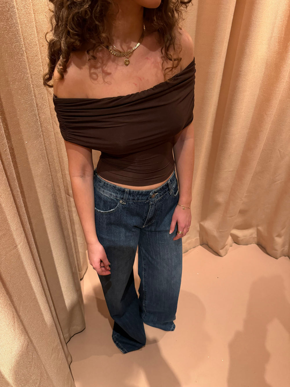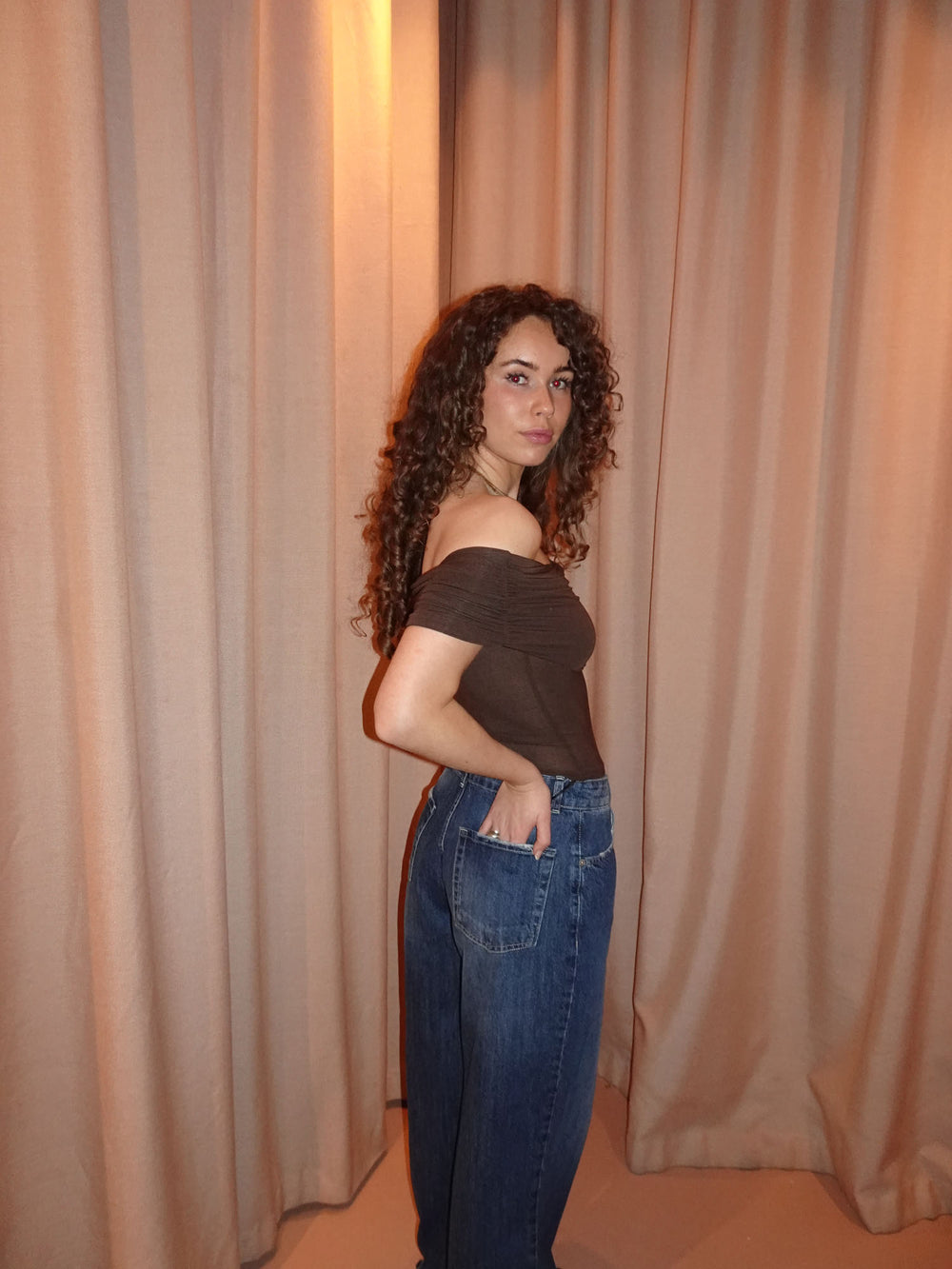 Vores Celora off shoulder top er både tætsiddende og elegant. toppen udstråler en enkel, men sofistikeret vibe, samtidig med at den har et unikt twist, der gør den perfekt til dem, der søger en klassisk look med et eksklusivt touch.