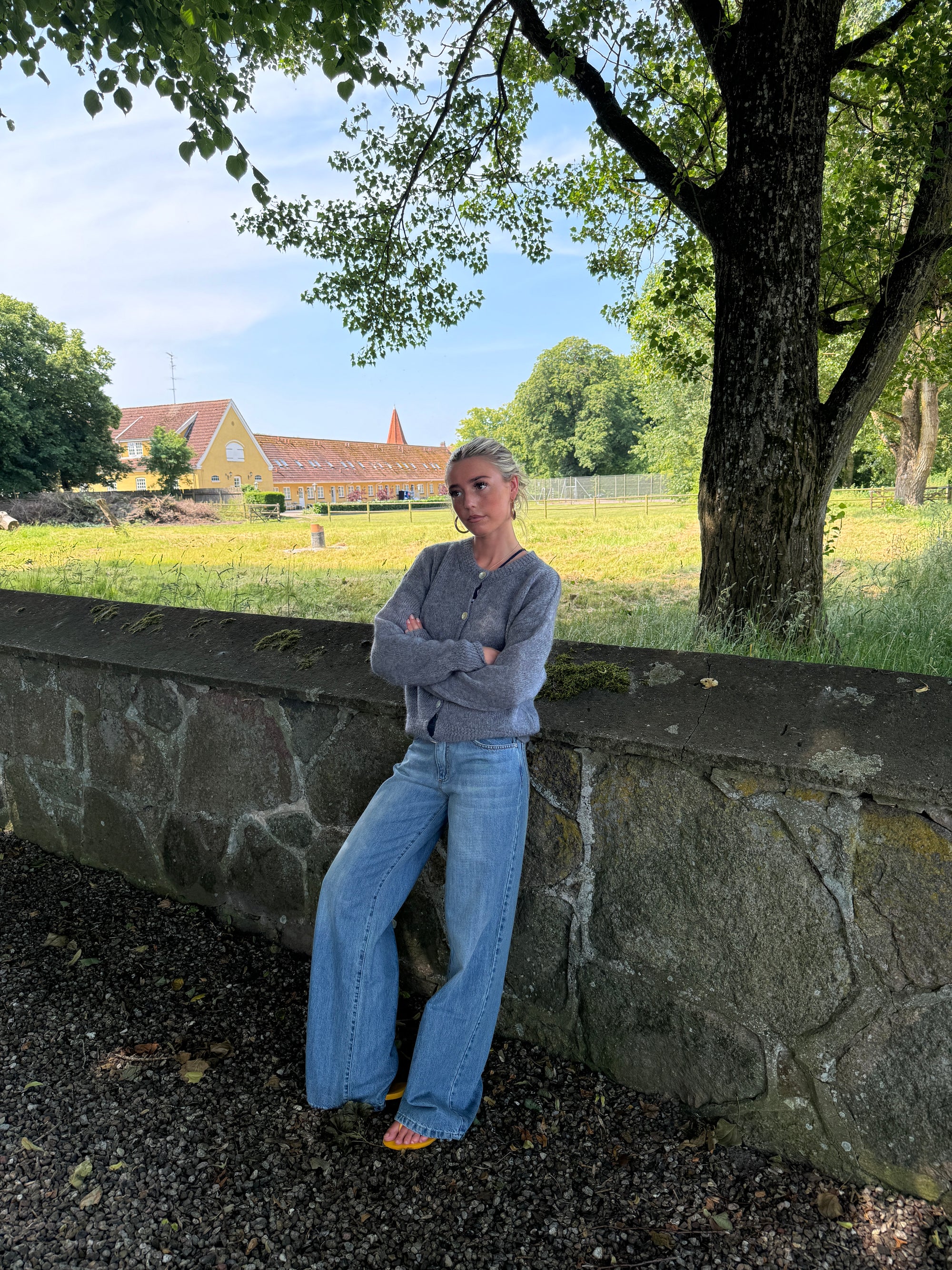 Denne cardigan kan lukkes med fem knapper foran og har en afslappet pasform. Den er lavet i det blødeste strik materiale og har en rund krave. Den kan enten bruges som hoveddel af et outfit eller over dit outfit som et ekstra lag. Findes også i lyserød.