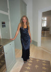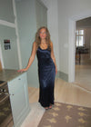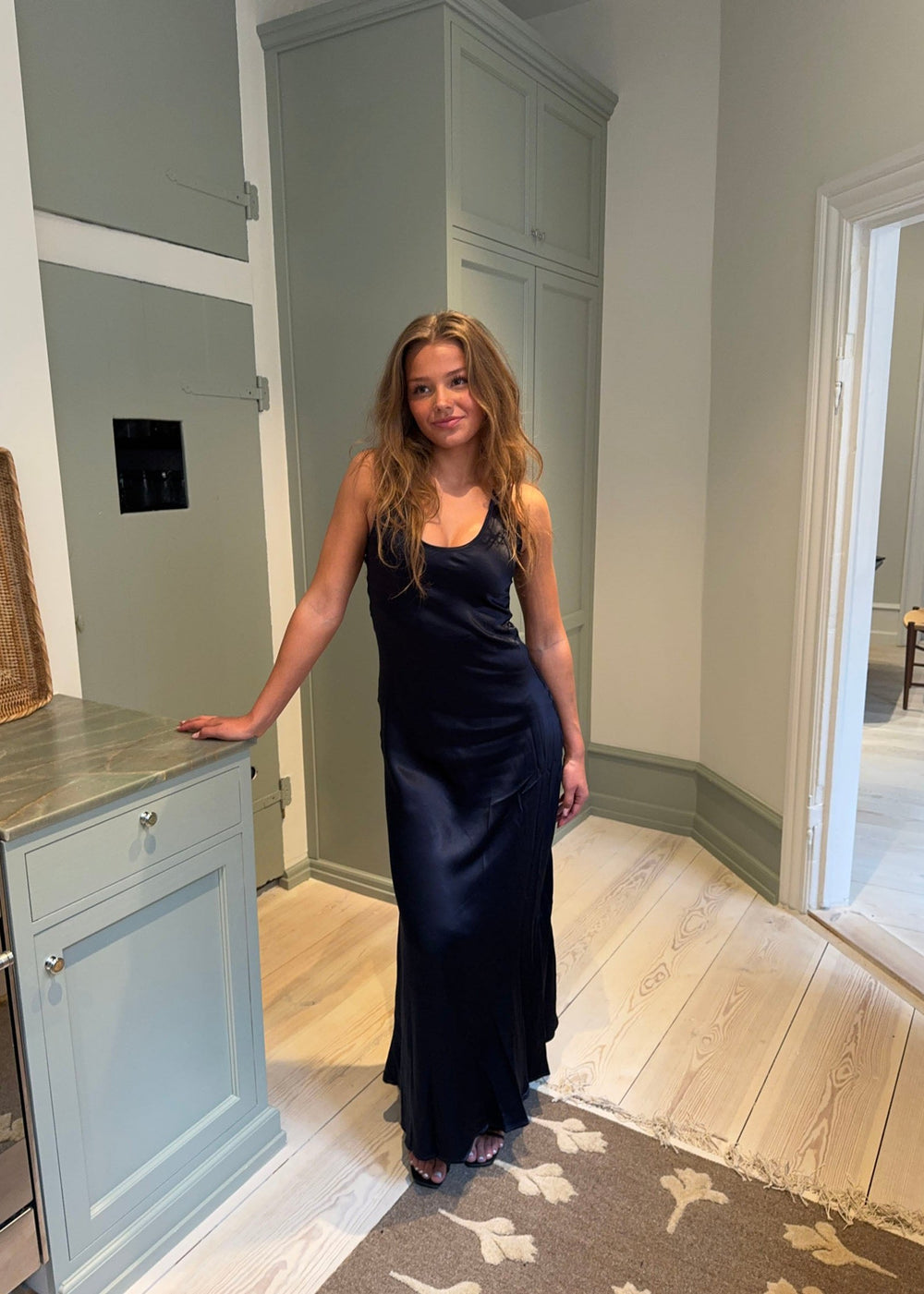 Vores Jeanne satin kjole i den smukke navy farve er det perfekte valg til nytårsaften eller andre festlige begivenheder i din kalender. Kjolen har en sofistikeret rund halsudskæring og en elegant maxi-længde, der giver et klassisk og tidløst look. Det glansfulde satin giver et luksuriøst touch, der får dig til at skinne hele aftenen. Style den med et par stilletter for et fuldendt og glamourøst festoutfit.