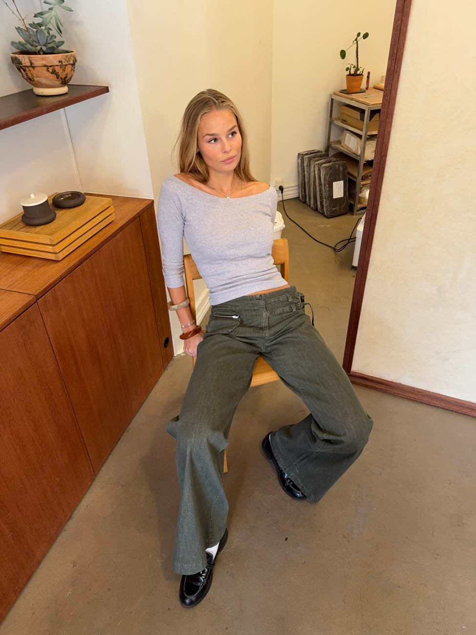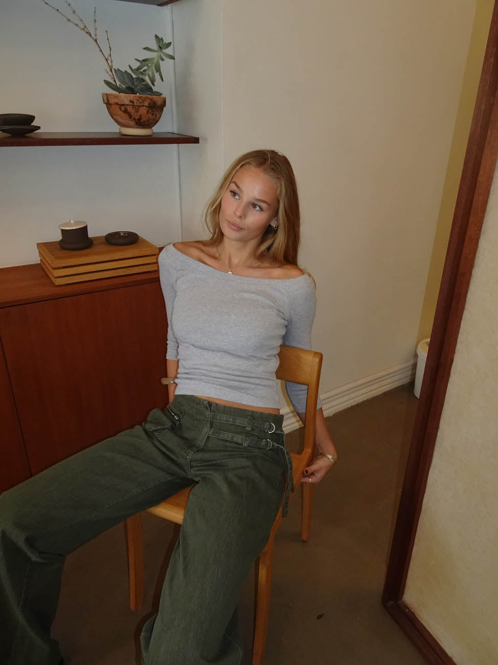 Denne grå basisbluse med bådudskæring er et tidløst must-have i enhver garderobe. Den tætsiddende pasform og det bløde, strækbare materiale sikrer både komfort og et flatterende fald, mens den lette bådudskæring tilføjer et feminint og raffineret udtryk.