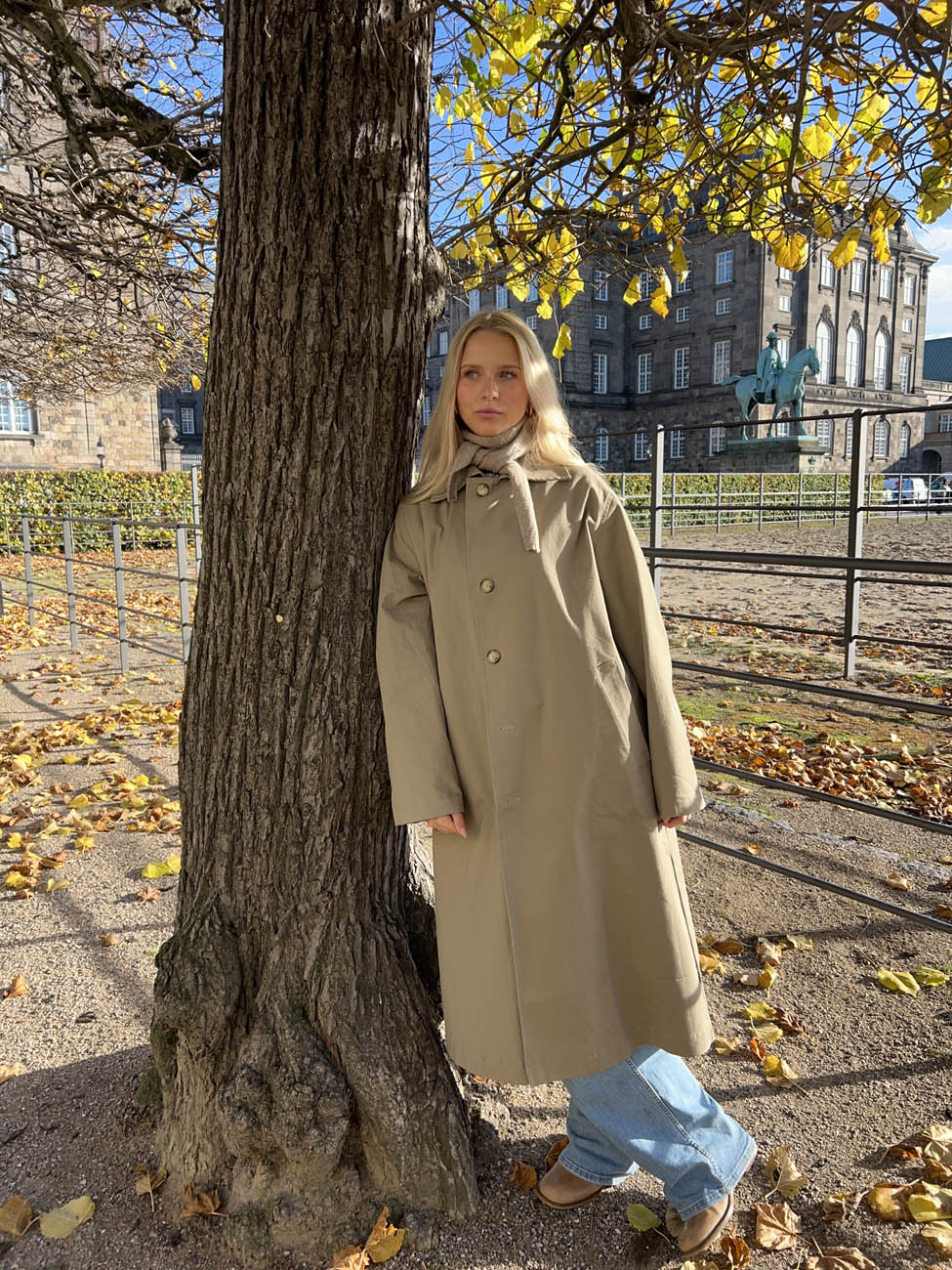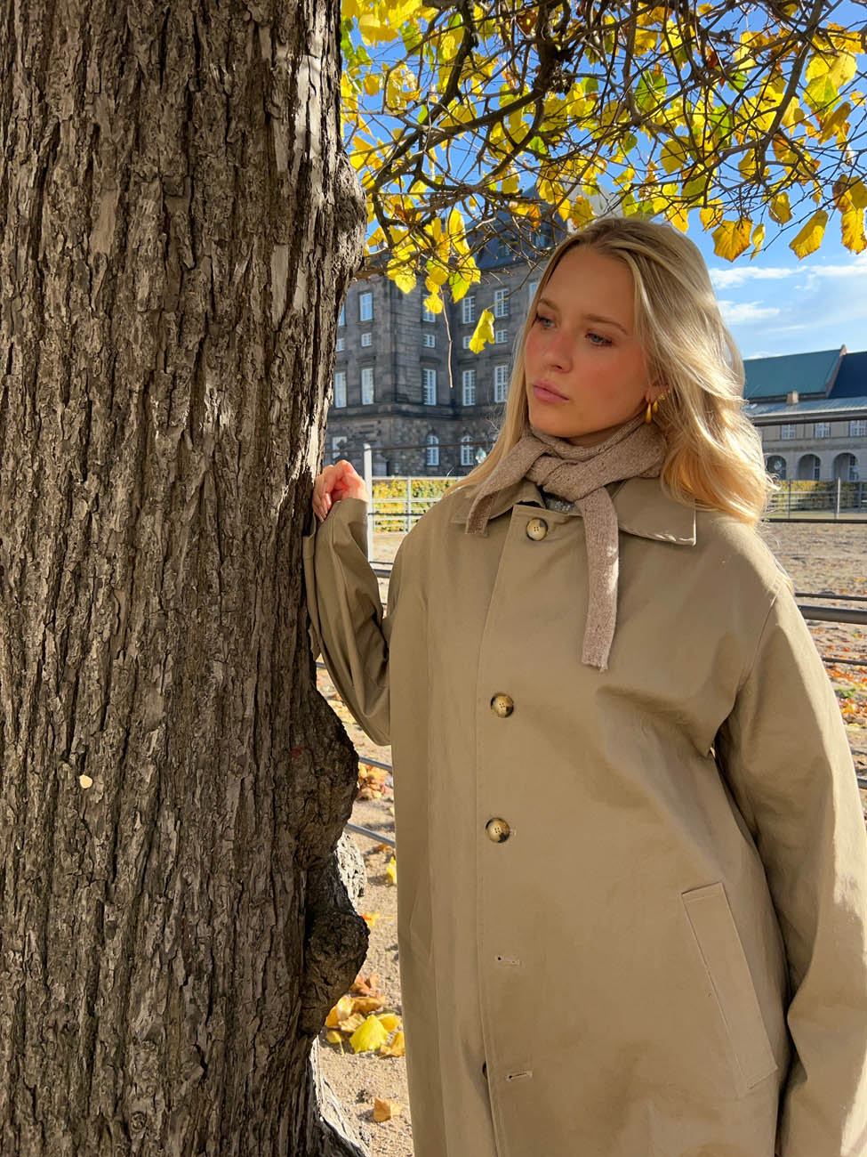 Tørklædets smalle form gør det nemt at binde på flere måder – rundt om halsen, i håret eller som et bælte for et mere personligt look. Perfekt både til hverdag og som et delikat stylingelement i din garderobe.